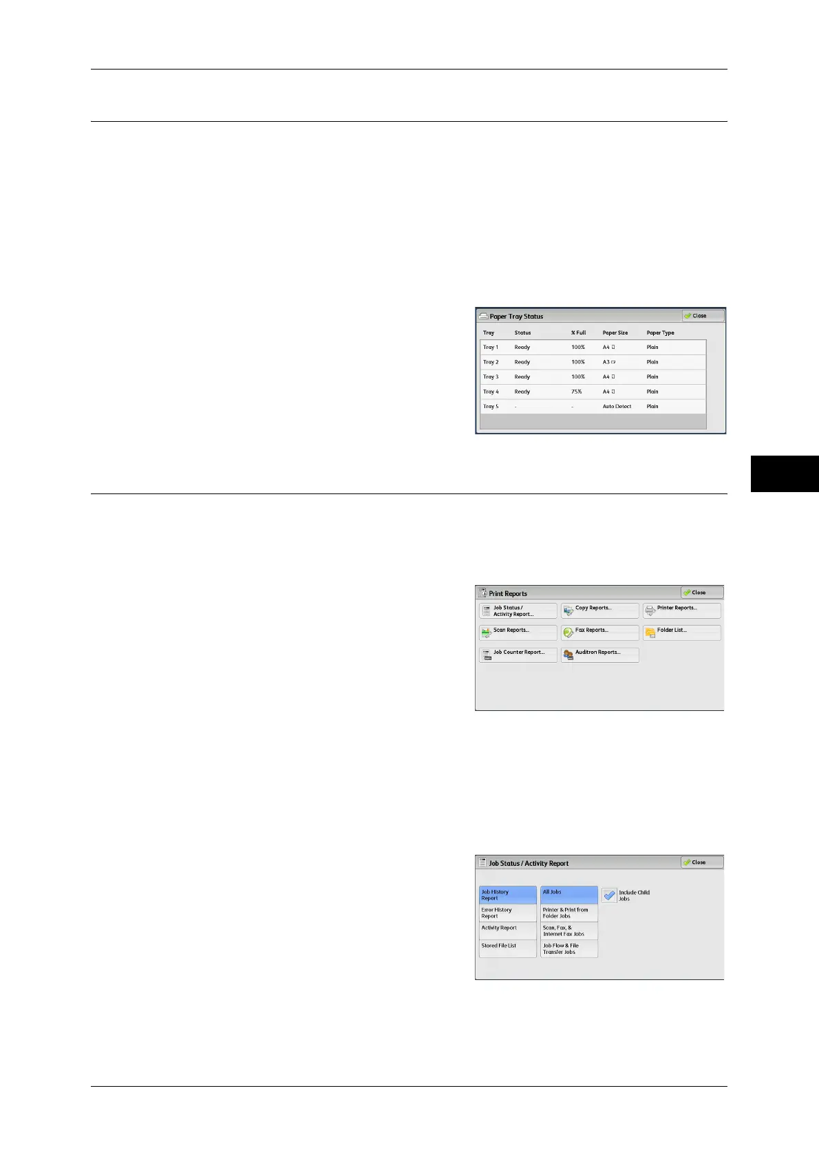 Note • To display the [Job Status/Activity Report] screen, select the <Machine Status> button, and