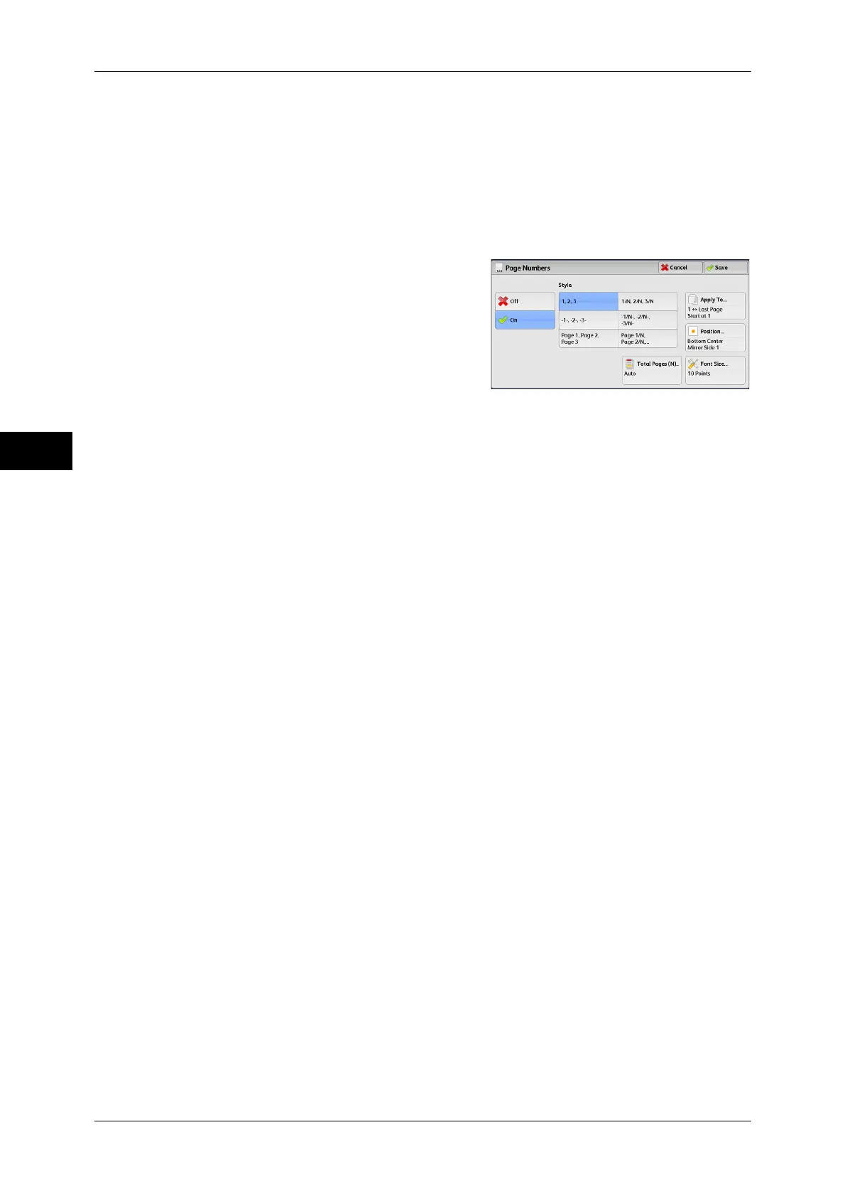 When you select [-1/N-, -2/N-, -3/N-], the value specified in [Total Pages (N)] is used