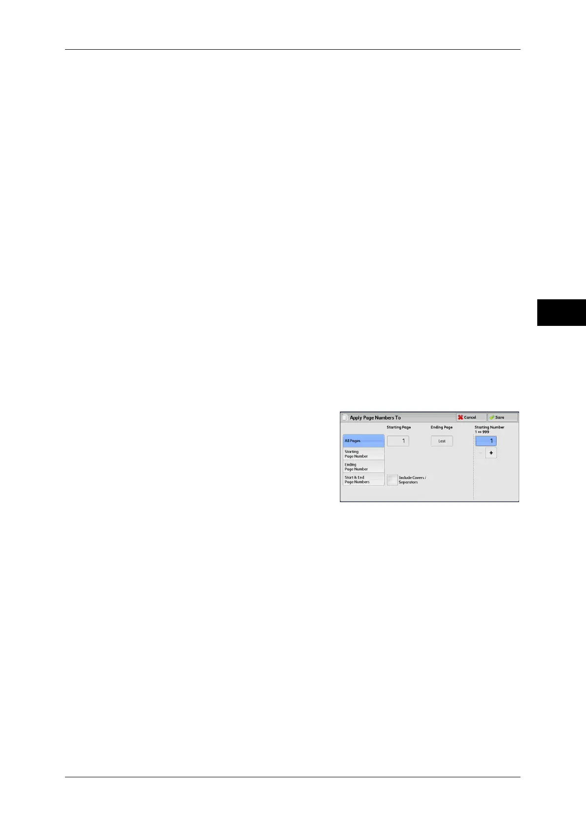 Refer to "[Apply Page Numbers To] Screen" (P.123).