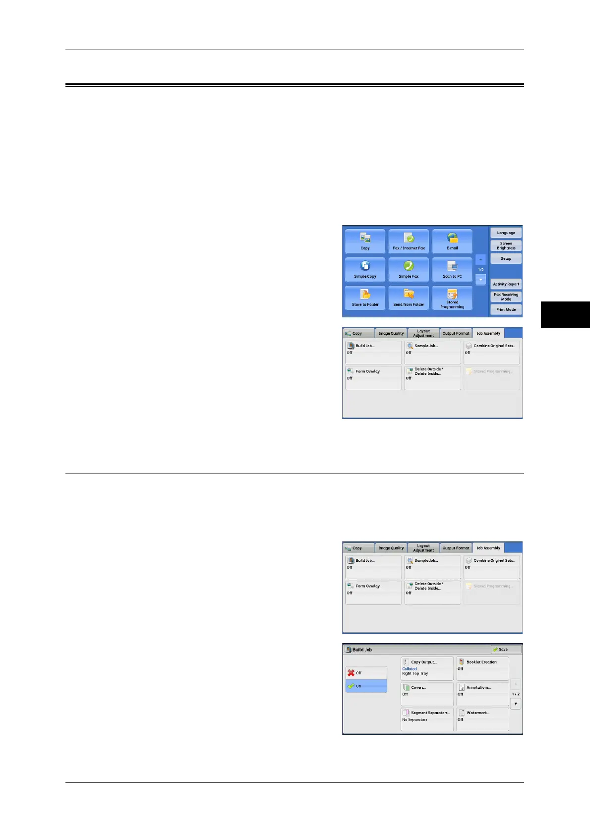 This section describes the features you can select on the [Job Assembly] screen. The