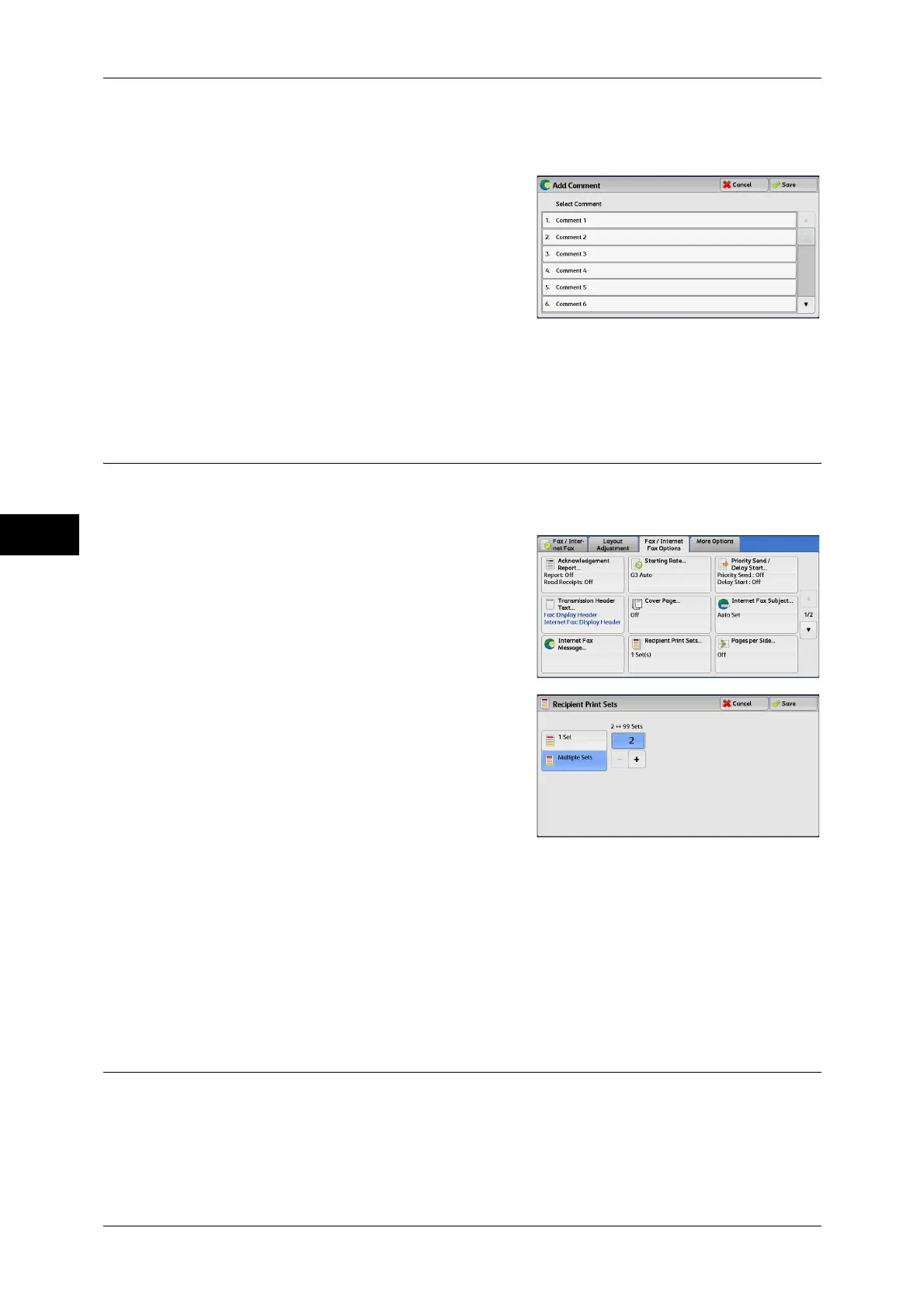 For information on how to register comments, refer to "5 Tools" > "Setup" > "Add Fax Comment" in the