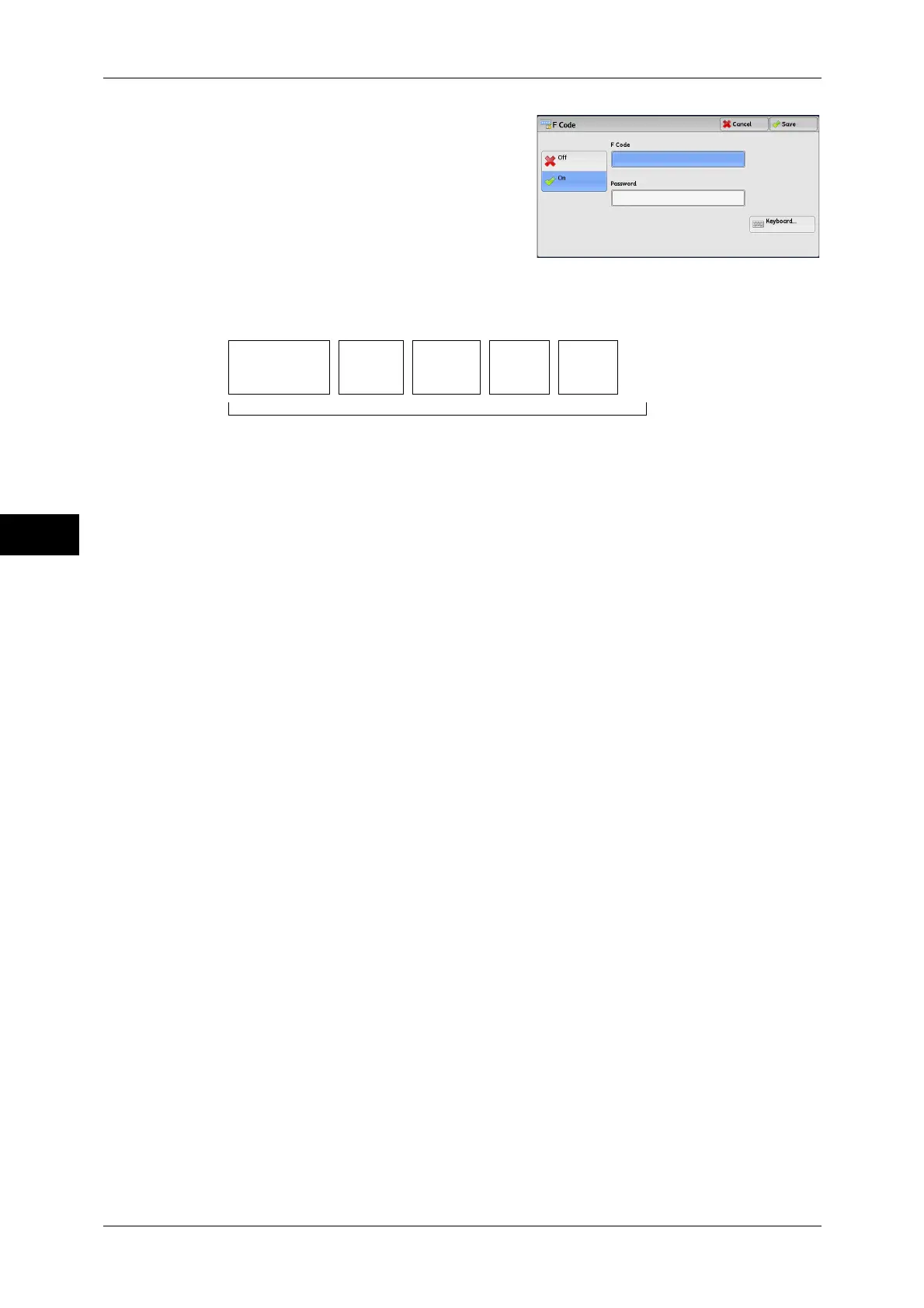 4 Select the [F Code] box, and enter the F Code with the numeric keypad.
