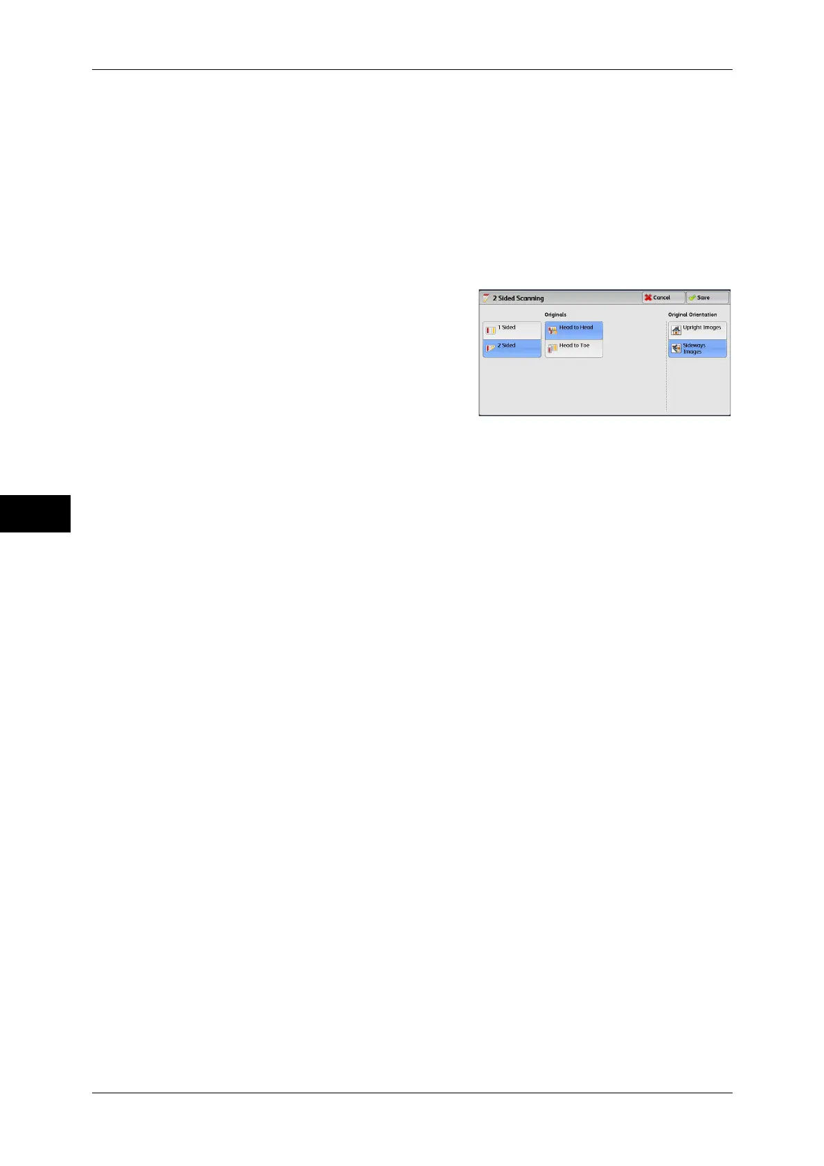 Refer to "[2 Sided Scanning] Screen" (P.266).