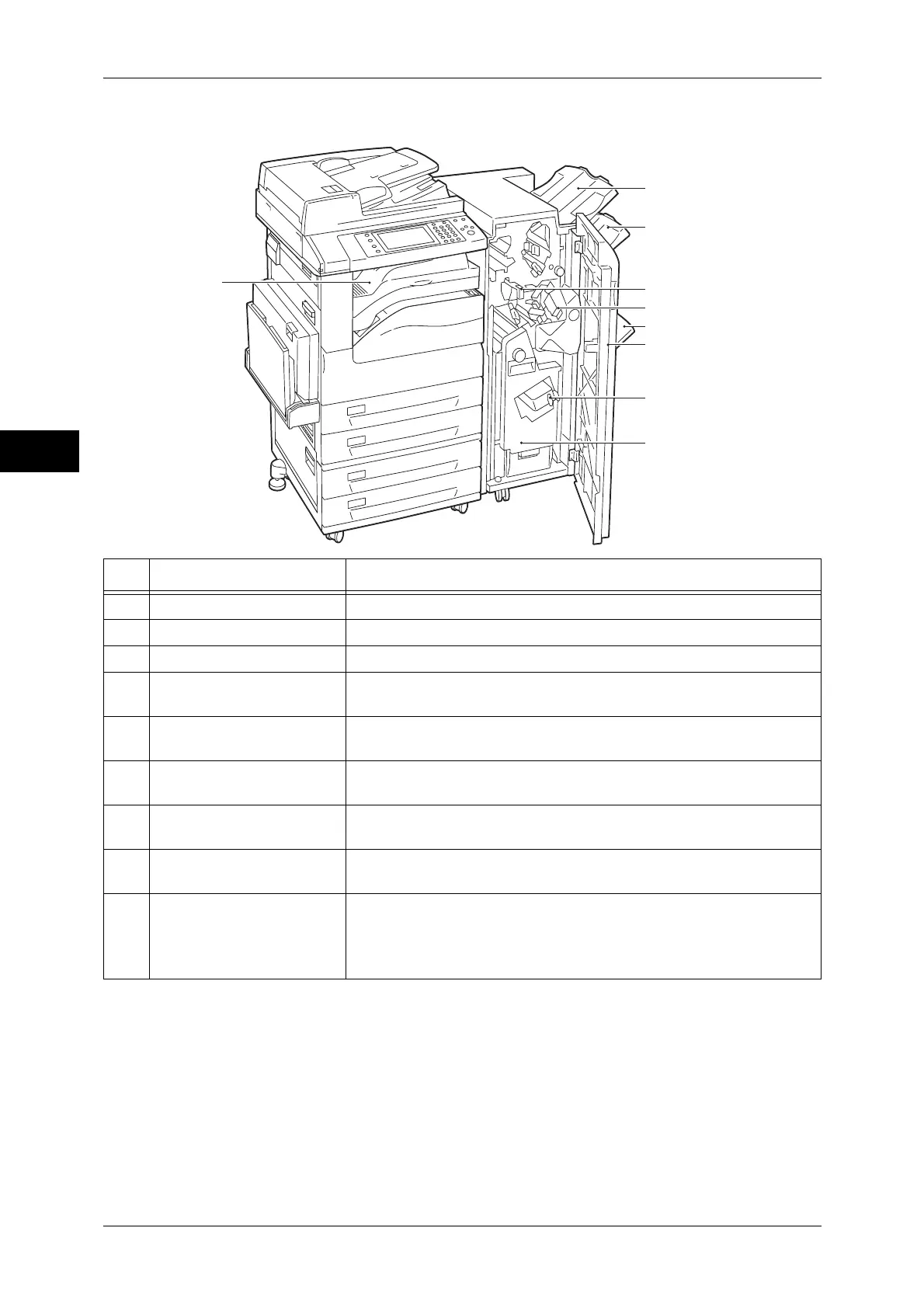 6 Front door Open this cover when clearing paper jams, replacing or adding staples,