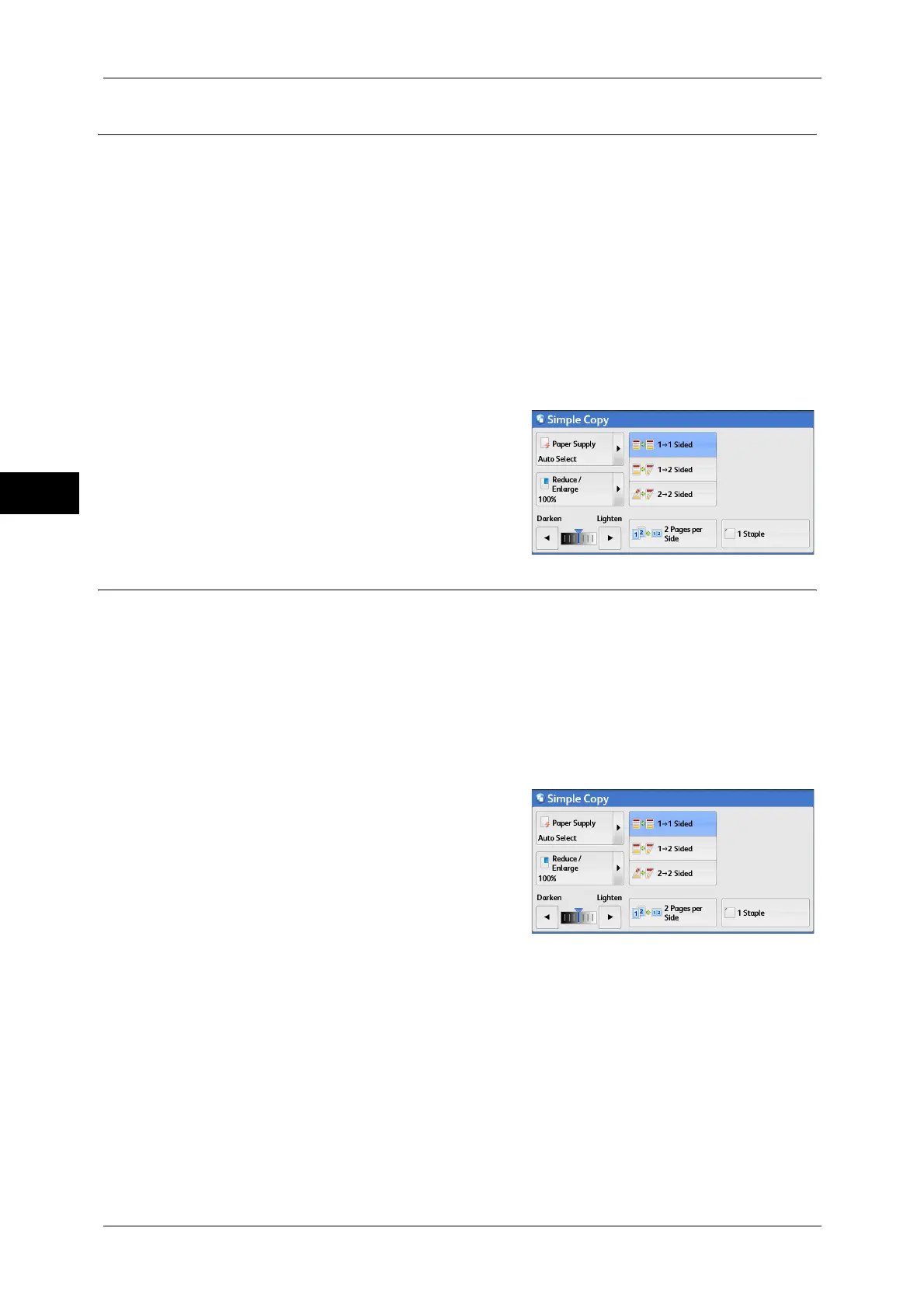 This feature allows you to select whether to staple copied outputs at the top left corner.