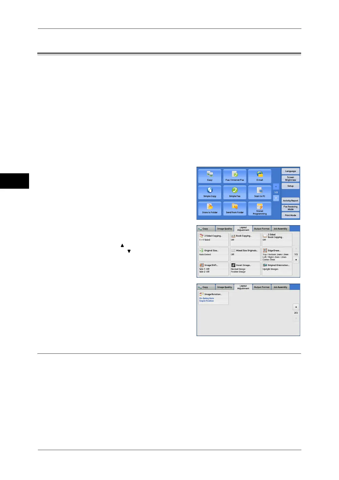 This section describes the features you can select on the [Layout Adjustment] screen.