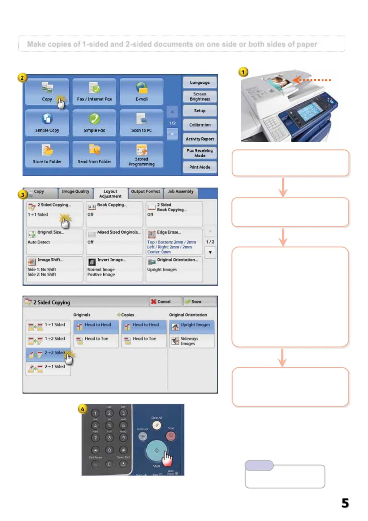 Make copies of 1-sided and 2-sided documents on one side or both sides of paper
