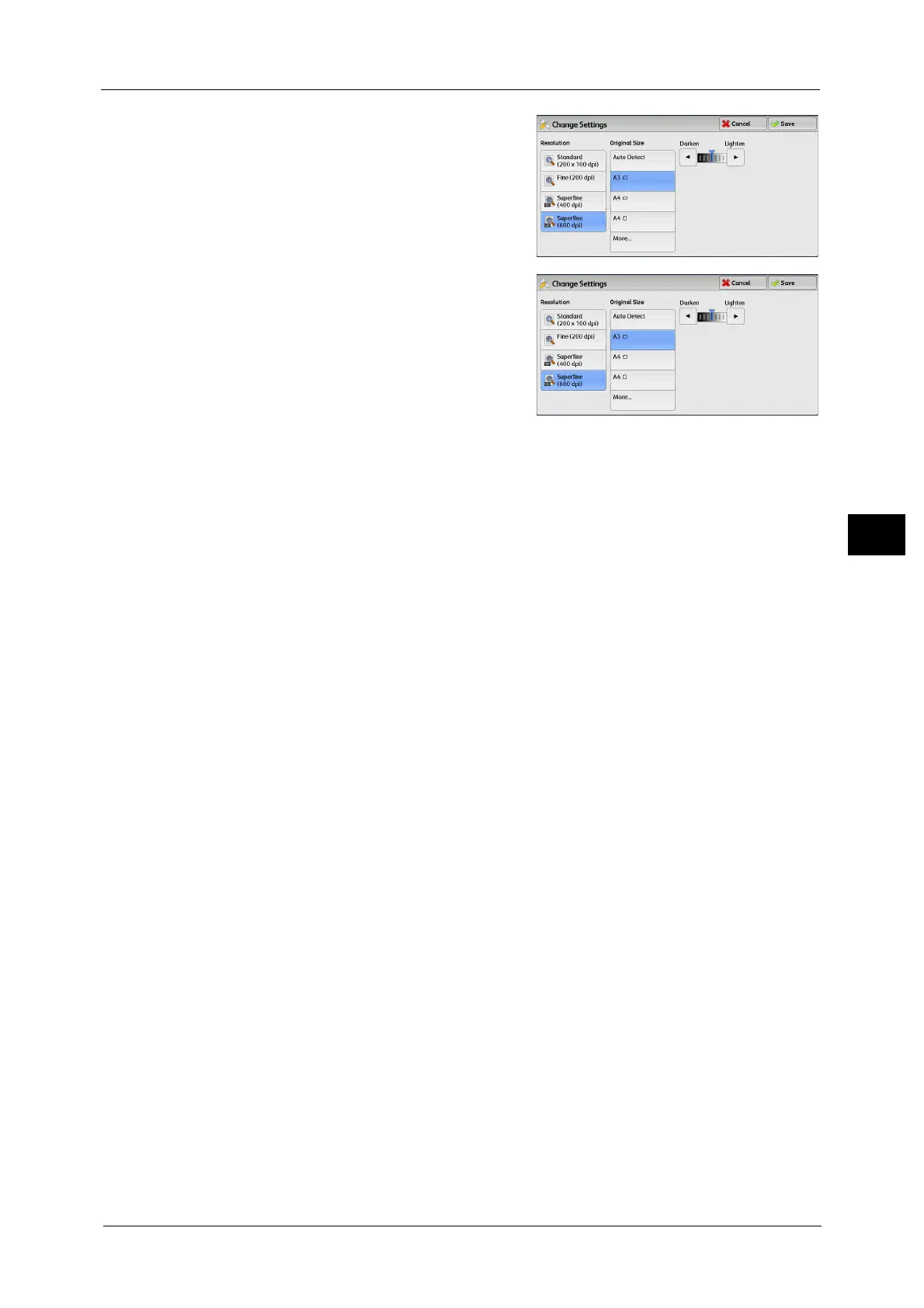 For each setting, refer to "Resolution (Specifying the Scanning