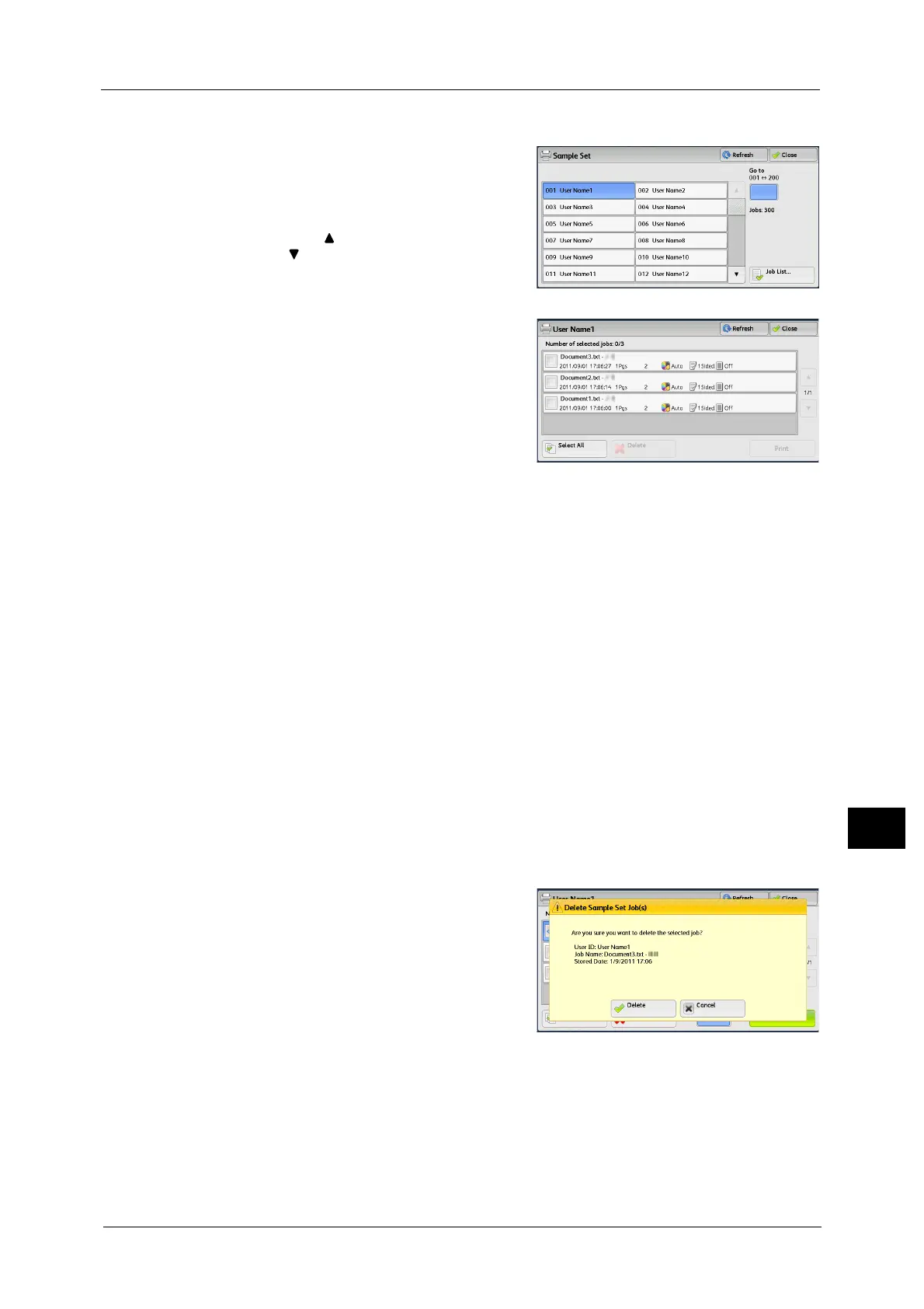 3 Select the job to be printed or deleted.