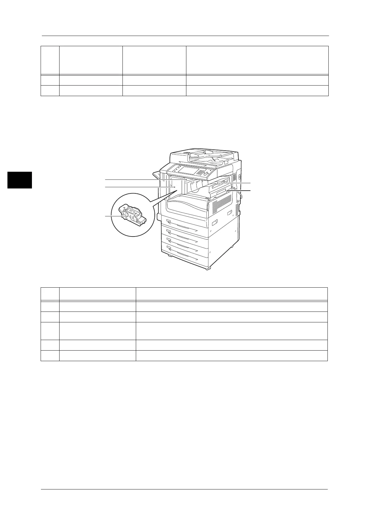 4 Front cover Open this cover when replacing staples or clearing staple jams.