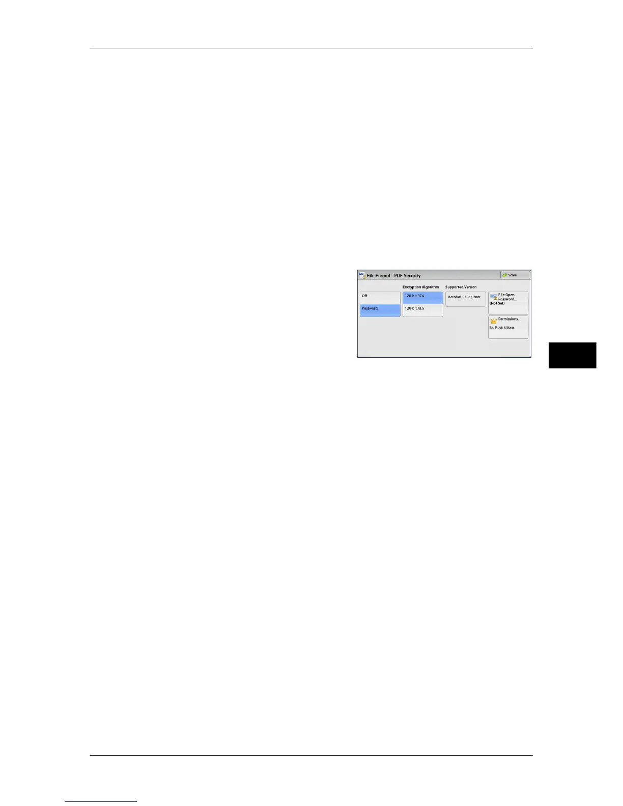 Refer to "[PDF Security - Permissions] Screen" (P.284).