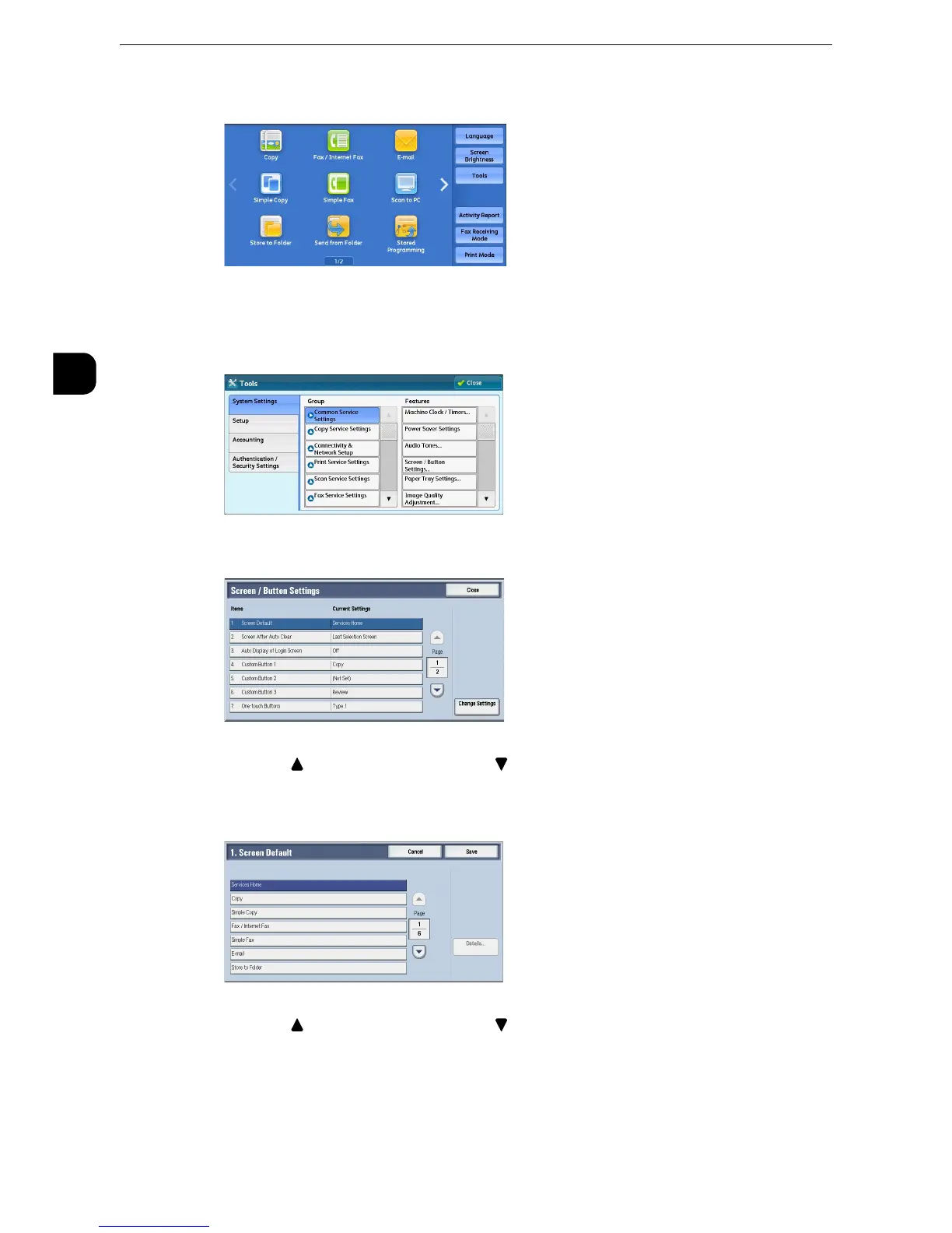 Select [System Settings] > [Common Service Settings] > [Screen/Button Settings].
