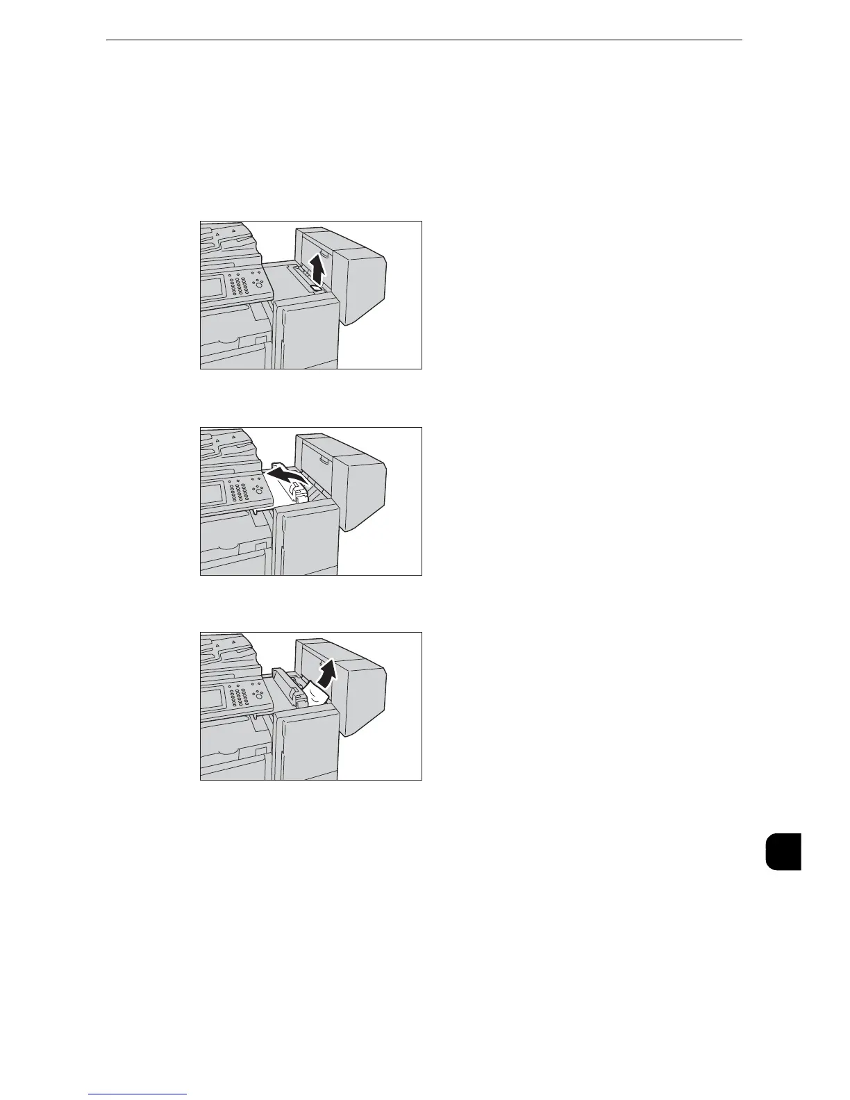 The following describes how to clear paper jams occurring in the Finisher-B1 (optional).