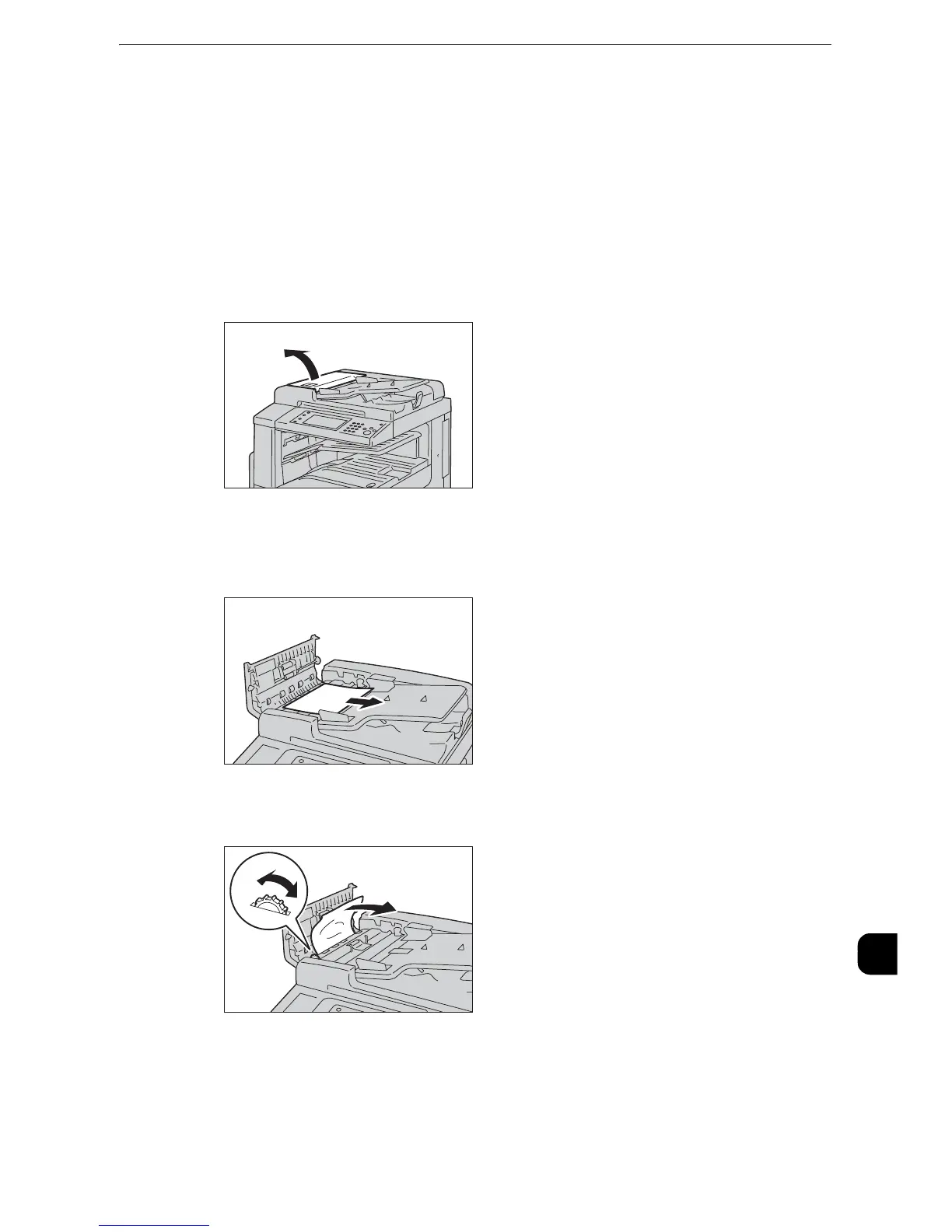 If the document is caught, do not pull it out forcibly. The document could be damaged.