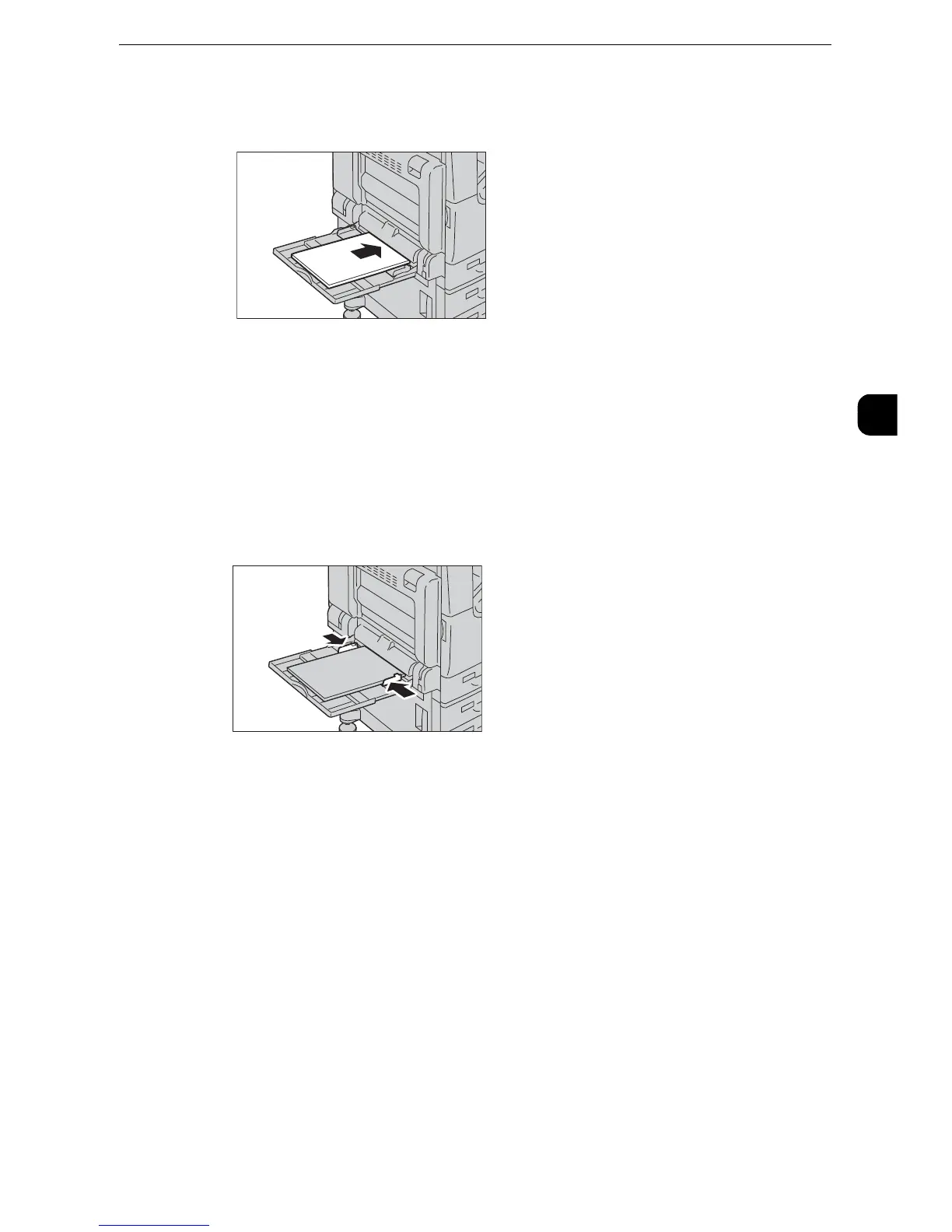 Load paper with the side to be copied or printed on facing down, inserting the paper until