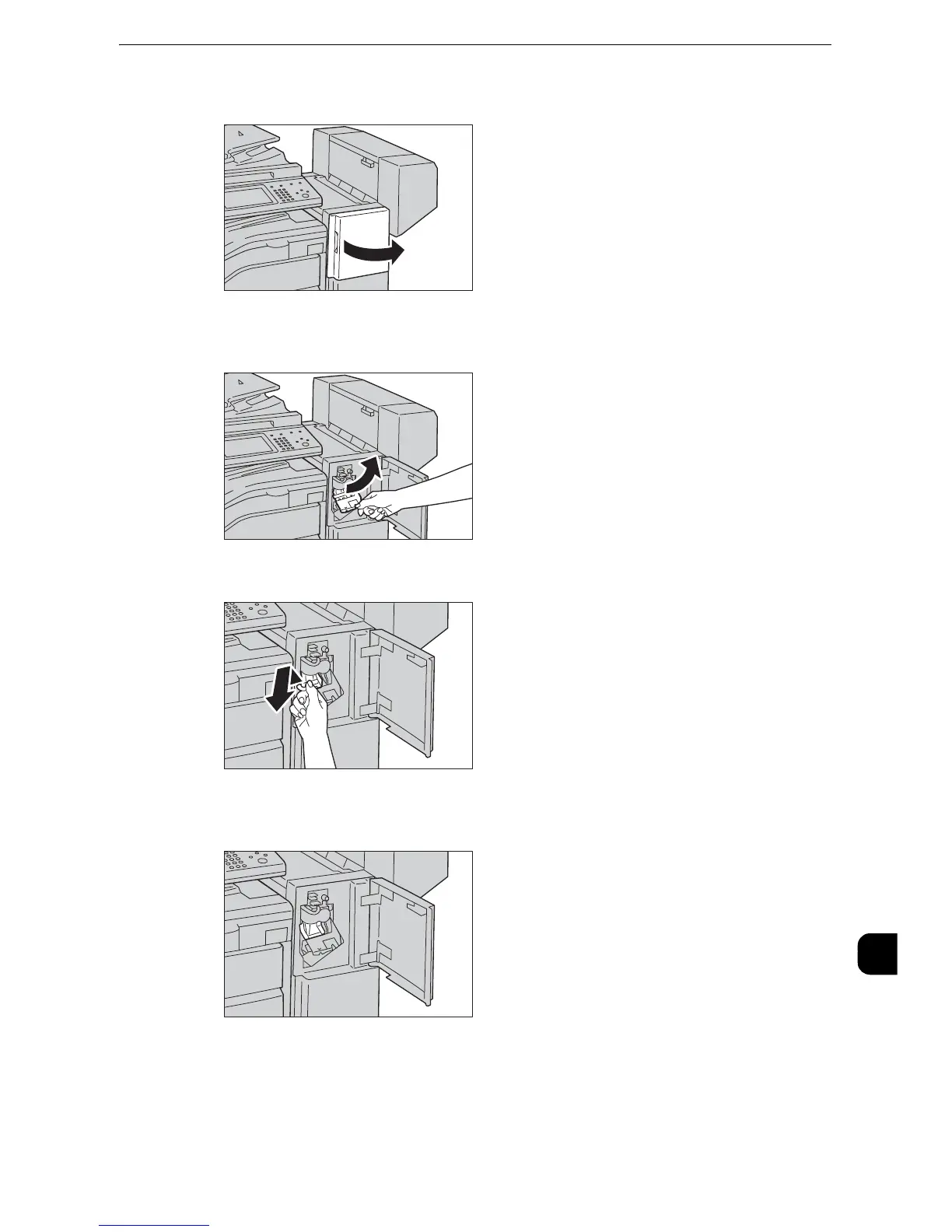 After you take out the staple cartridge, check inside of the finisher for any remaining