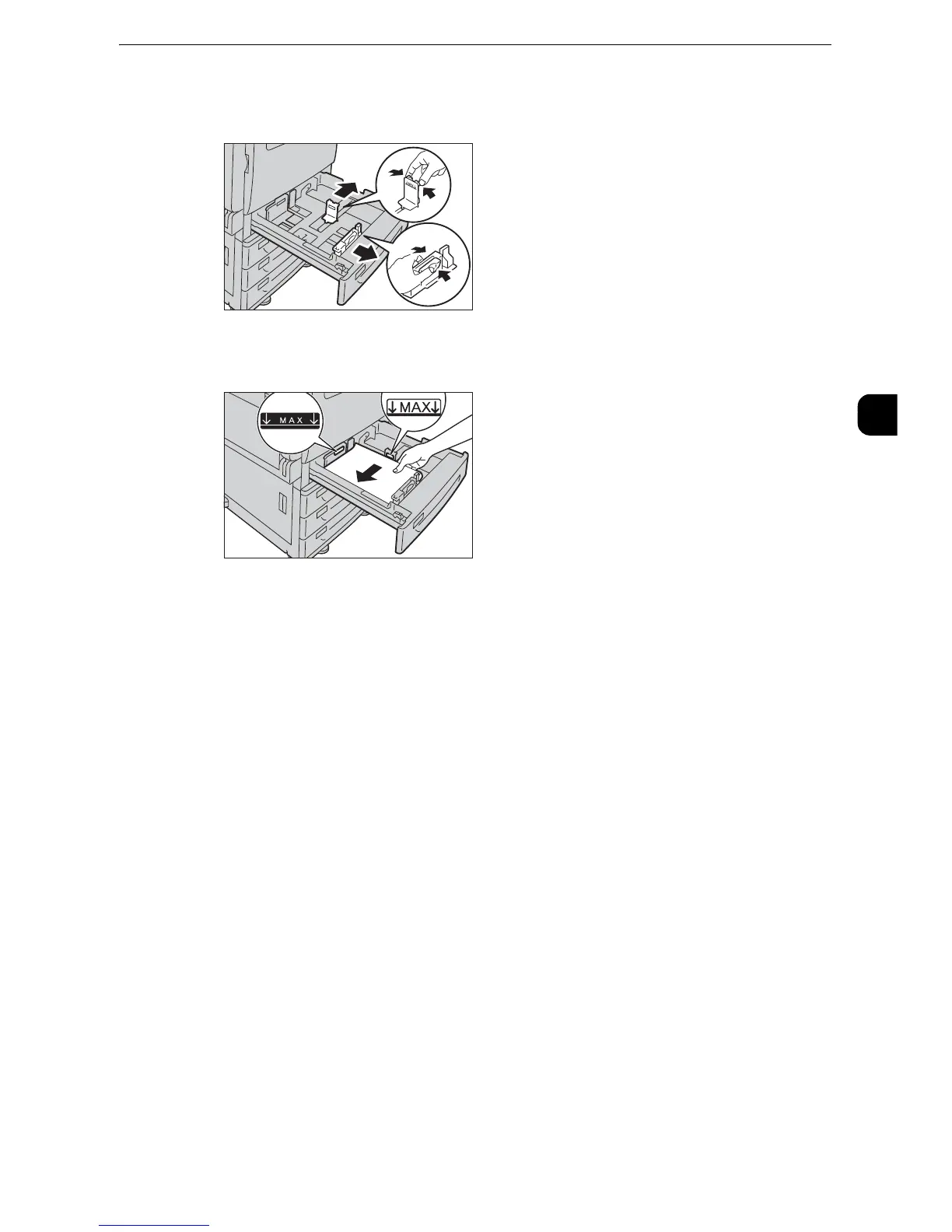 While pinching the two paper guides, move them to the positions for the paper size you are