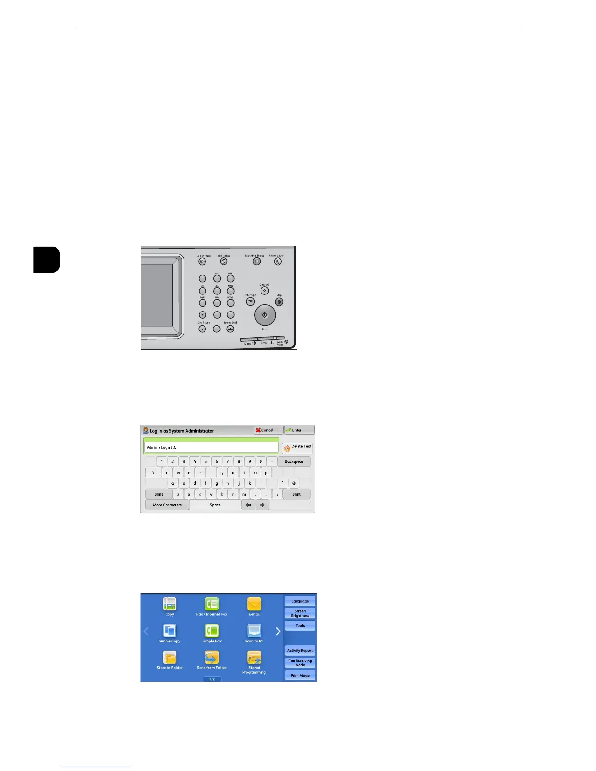 Enter the system administrator’s user ID with the numeric keypad or the keyboard
