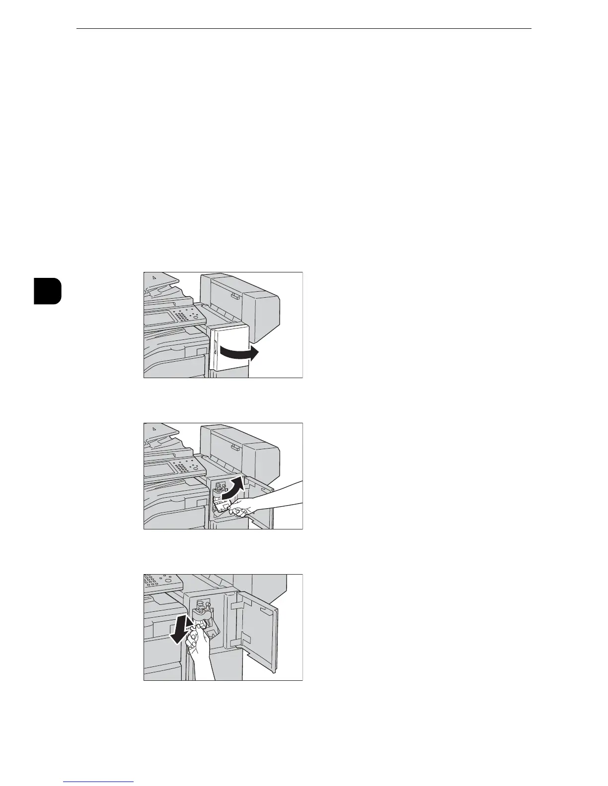When the optional Finisher-B1 is installed and the staple cartridge needs to be replaced, a
