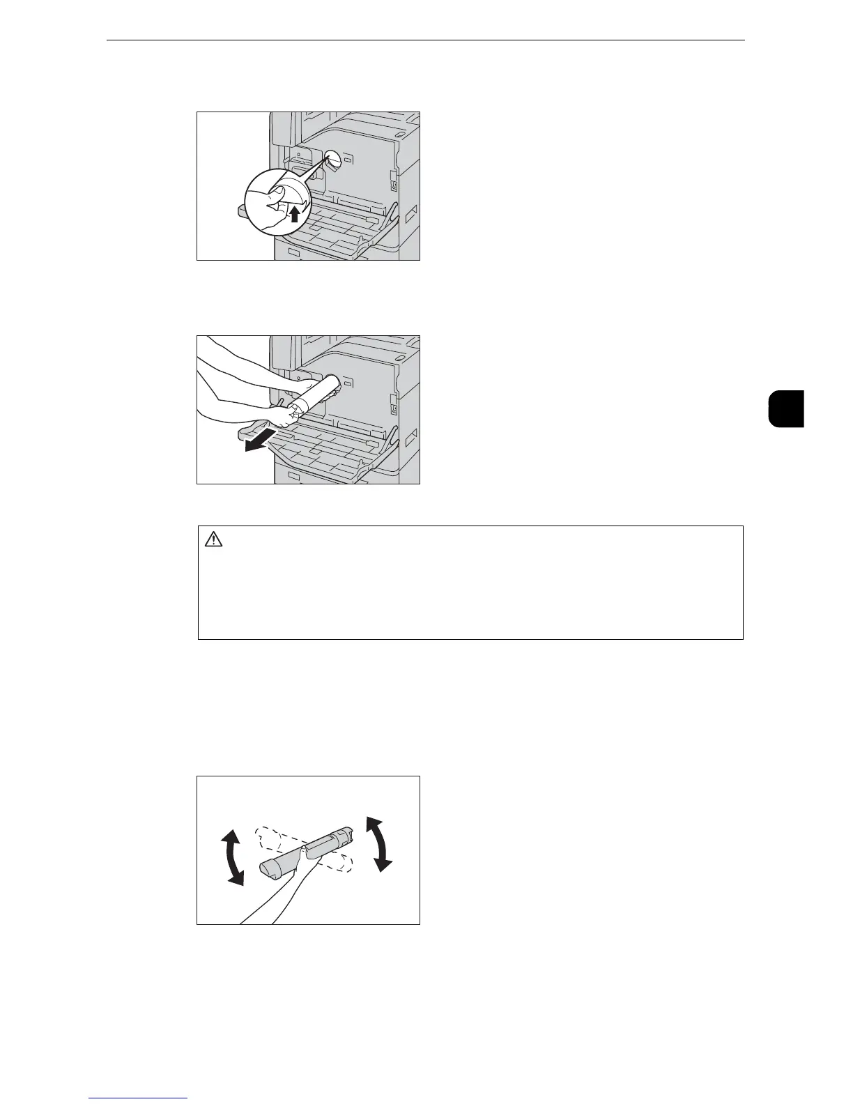 Slide out the toner cartridge gently. Otherwise, toner may spill from the cartridge.