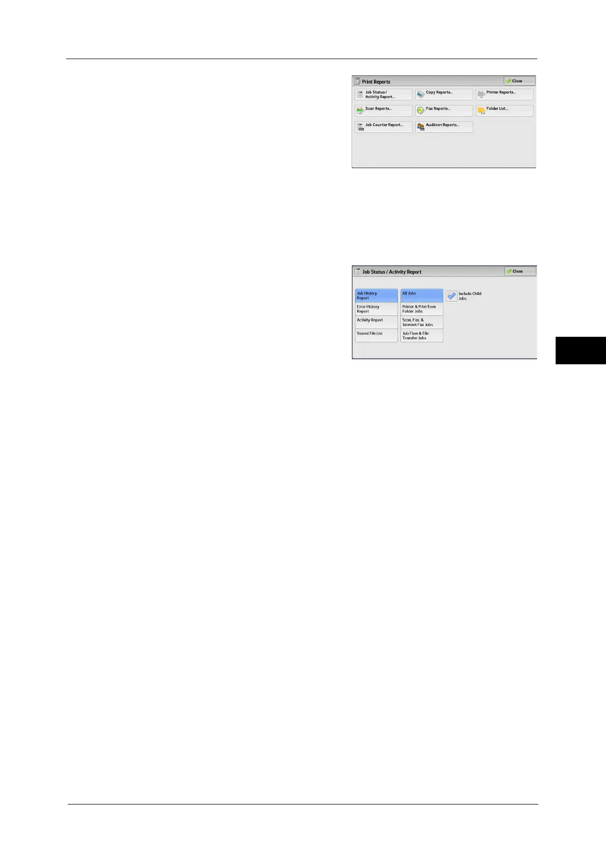 select [Machine Information] > [Print Reports] > [Job Status/Activity Report].