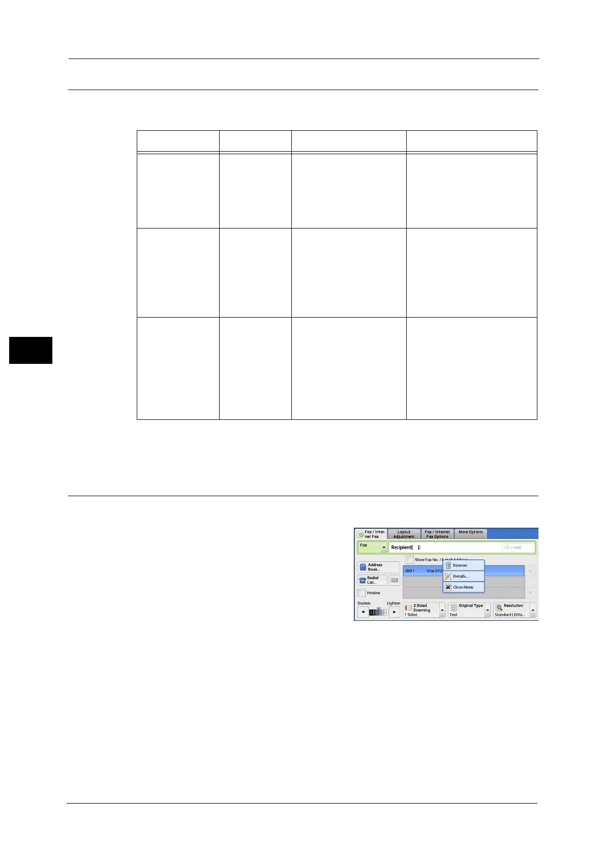 Displays the [Details] screen. You can confirm recipients or address numbers.