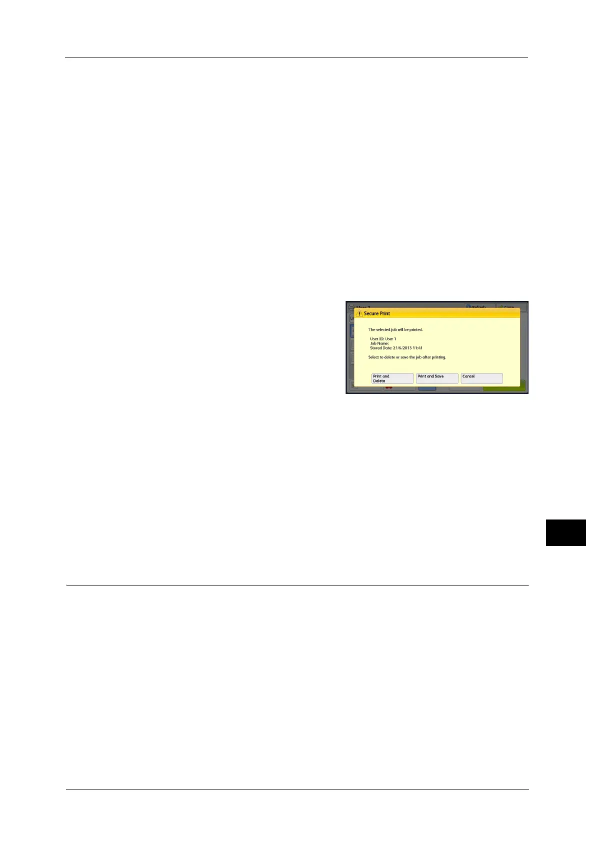 Prints the Secure Print job.