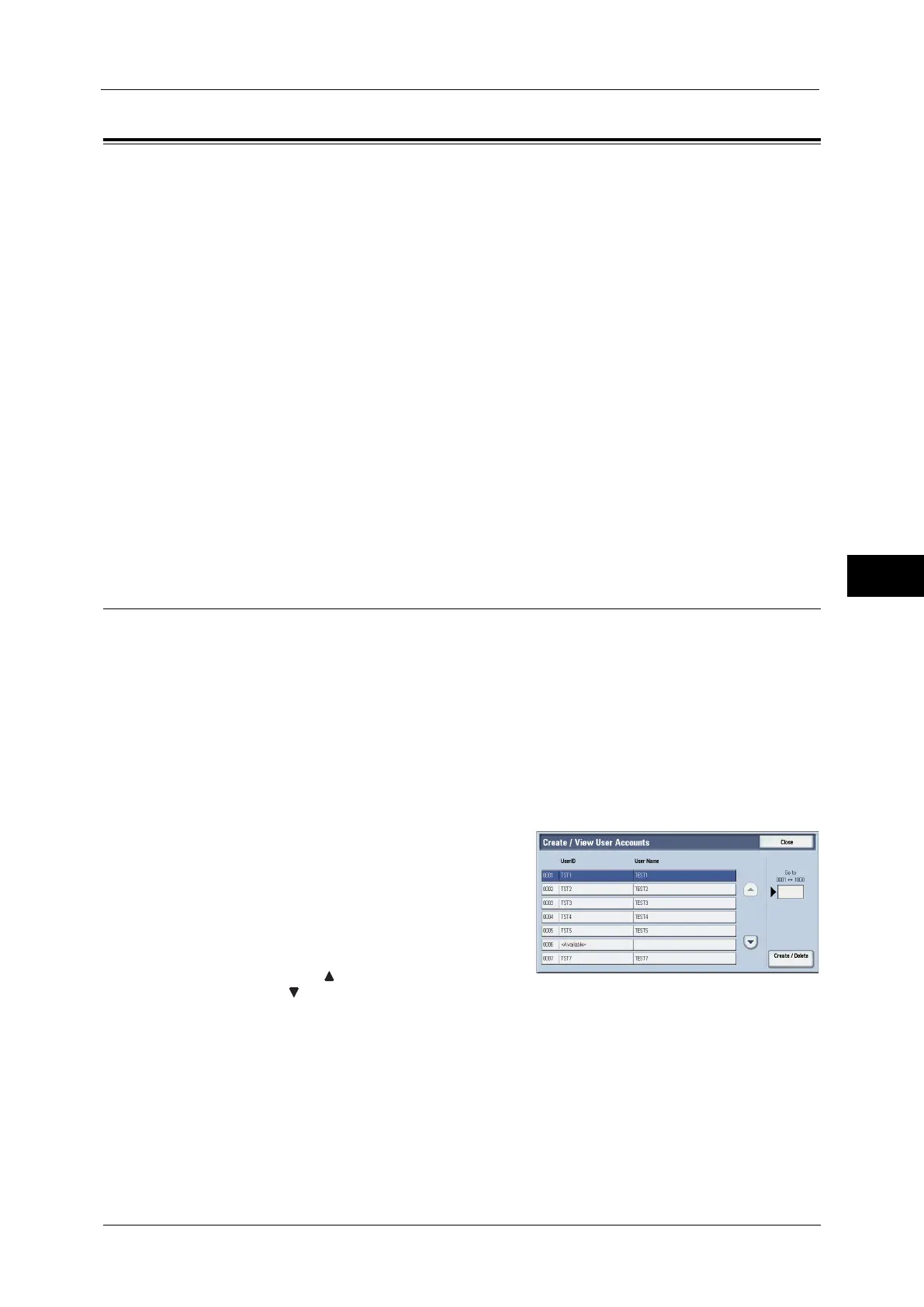 registered. The settings described here are identical with [Create/View User Accounts] under