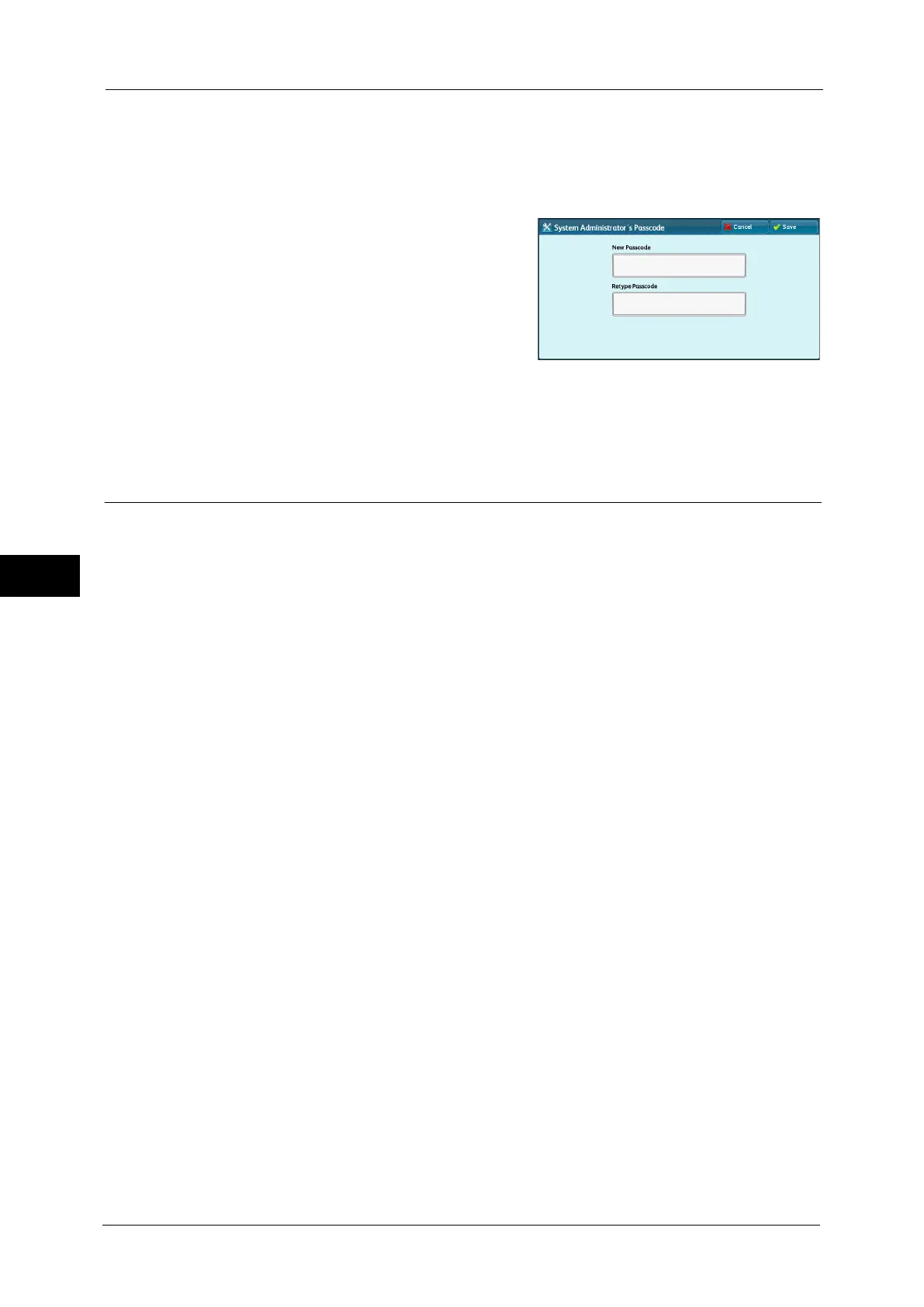 Set the passcode after setting the system administrator's user ID. You can set the passcode