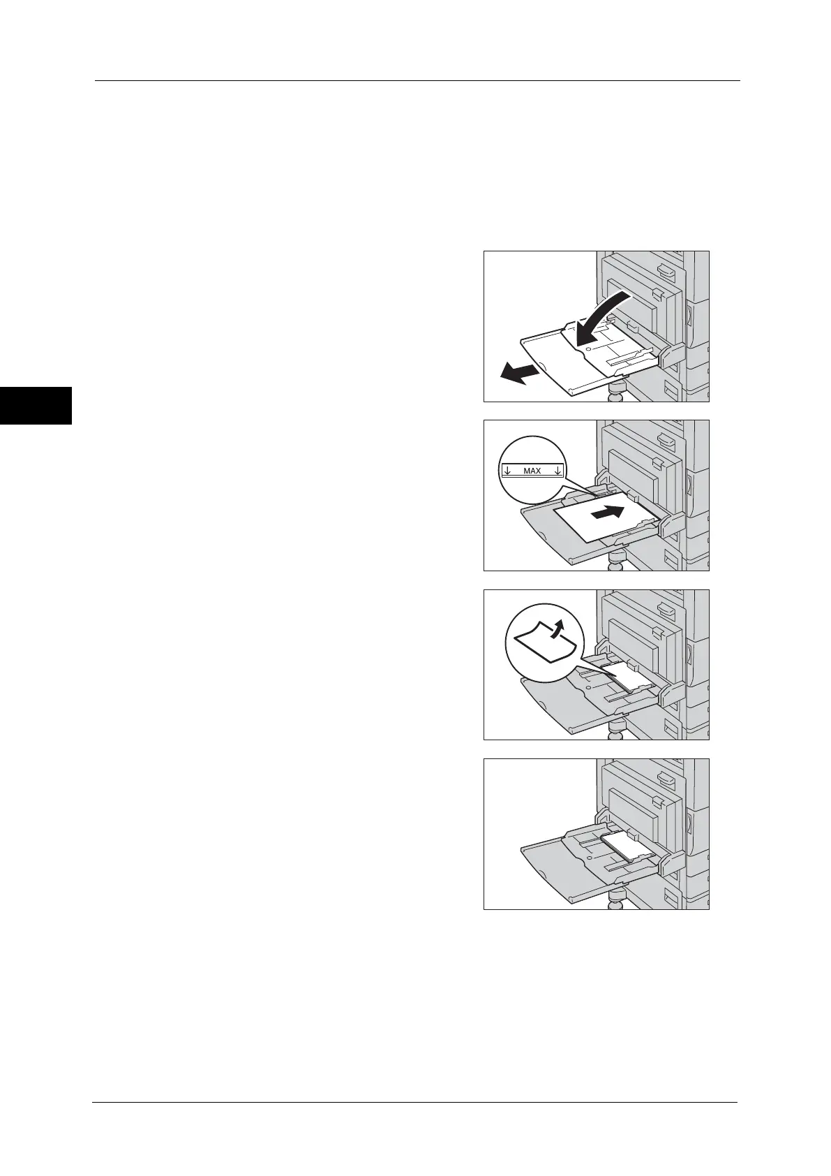 The following describes the procedure for loading paper into Tray 5 (Bypass). For printings,