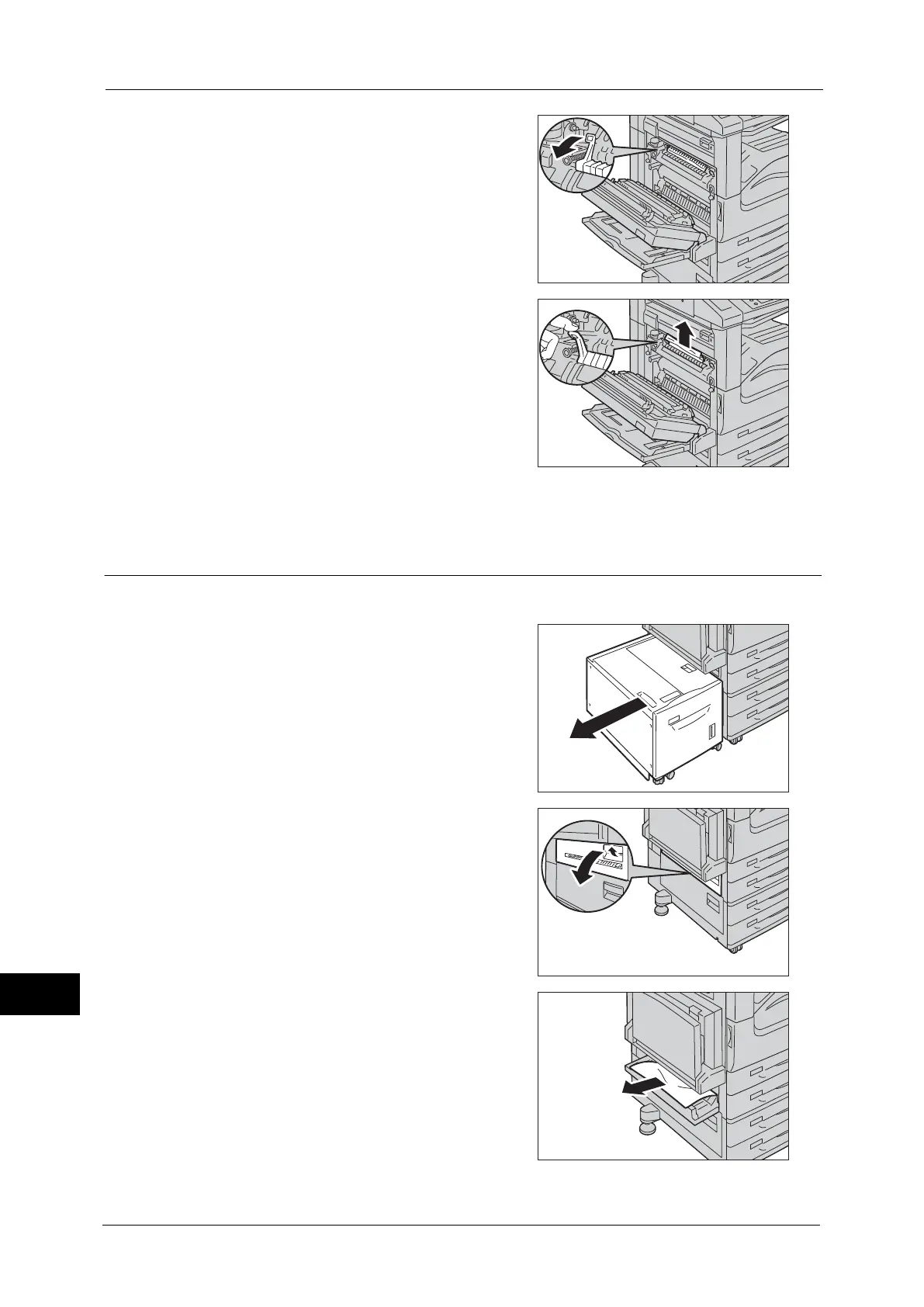 If paper is jammed at the fusing unit, pull down