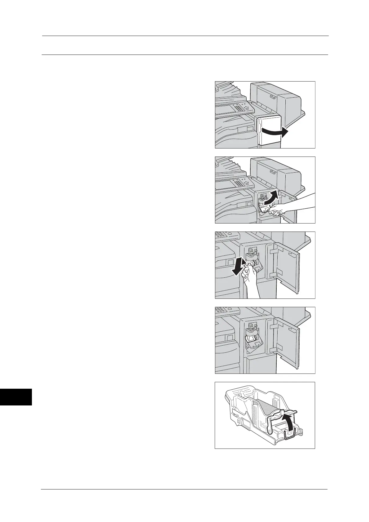 This section describes how to clear staple jam occurred in the staple cartridge of the Finisher-