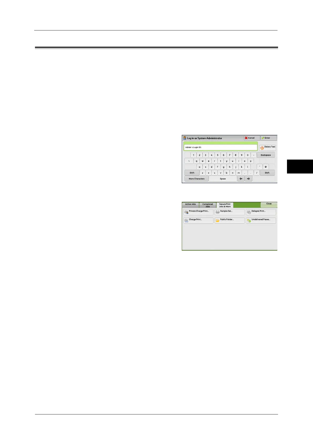 For more information on the Private Charge Print feature, refer to "11 Job Status" > "Printing and Deleting Stored Jobs", and