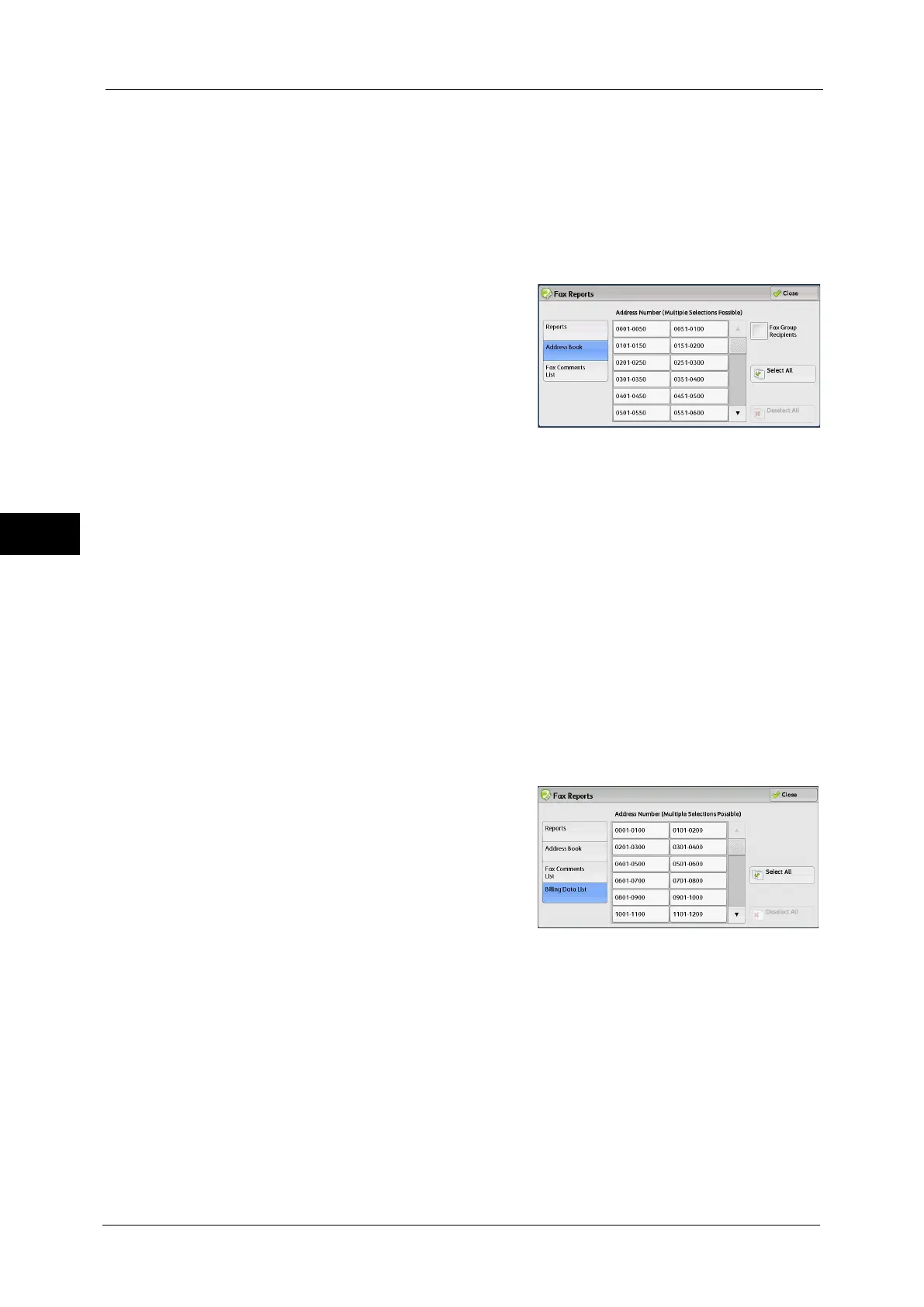 You can print the lists of settings for all address numbers, fax group recipients, and relay