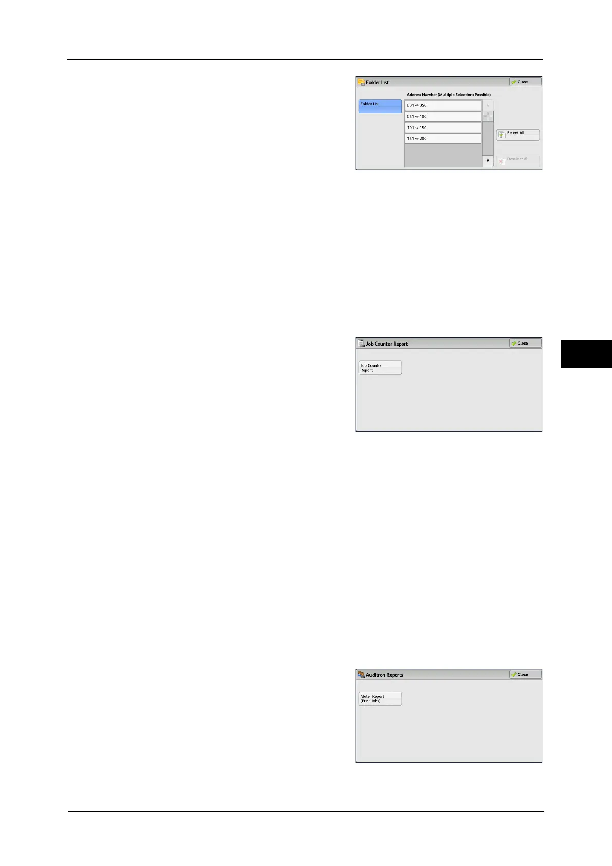 Note • To display the [Auditron Reports] screen, select the <Machine Status> button, and then select