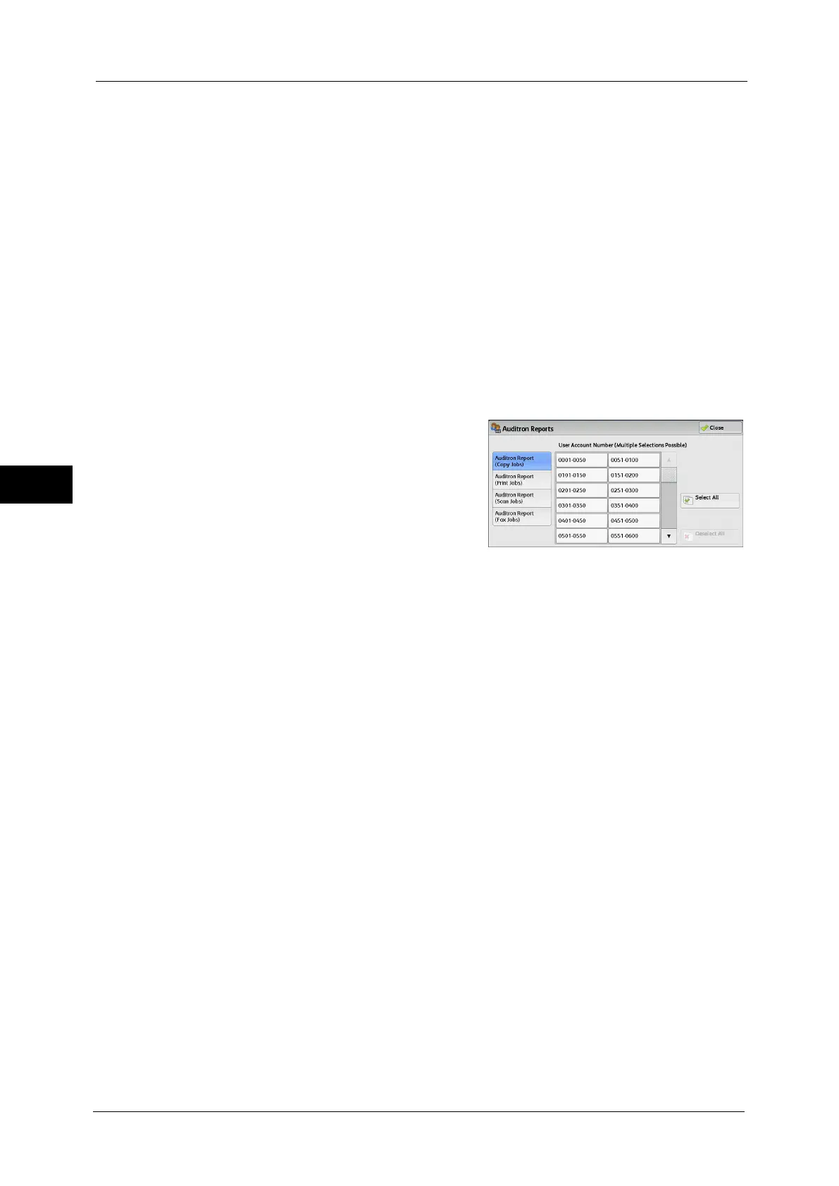 Note • To display the [Auditron Reports] screen, select the <Machine Status> button, and then select