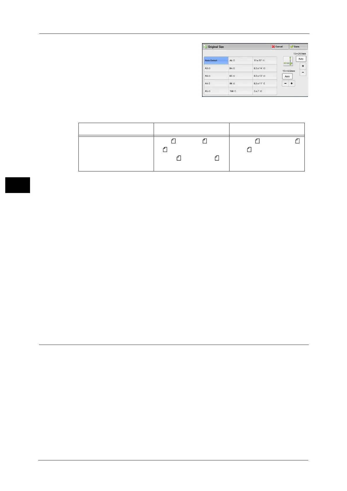 The document sizes that can be automatically detected depend on [Paper Size Settings] in the System Administration mode.