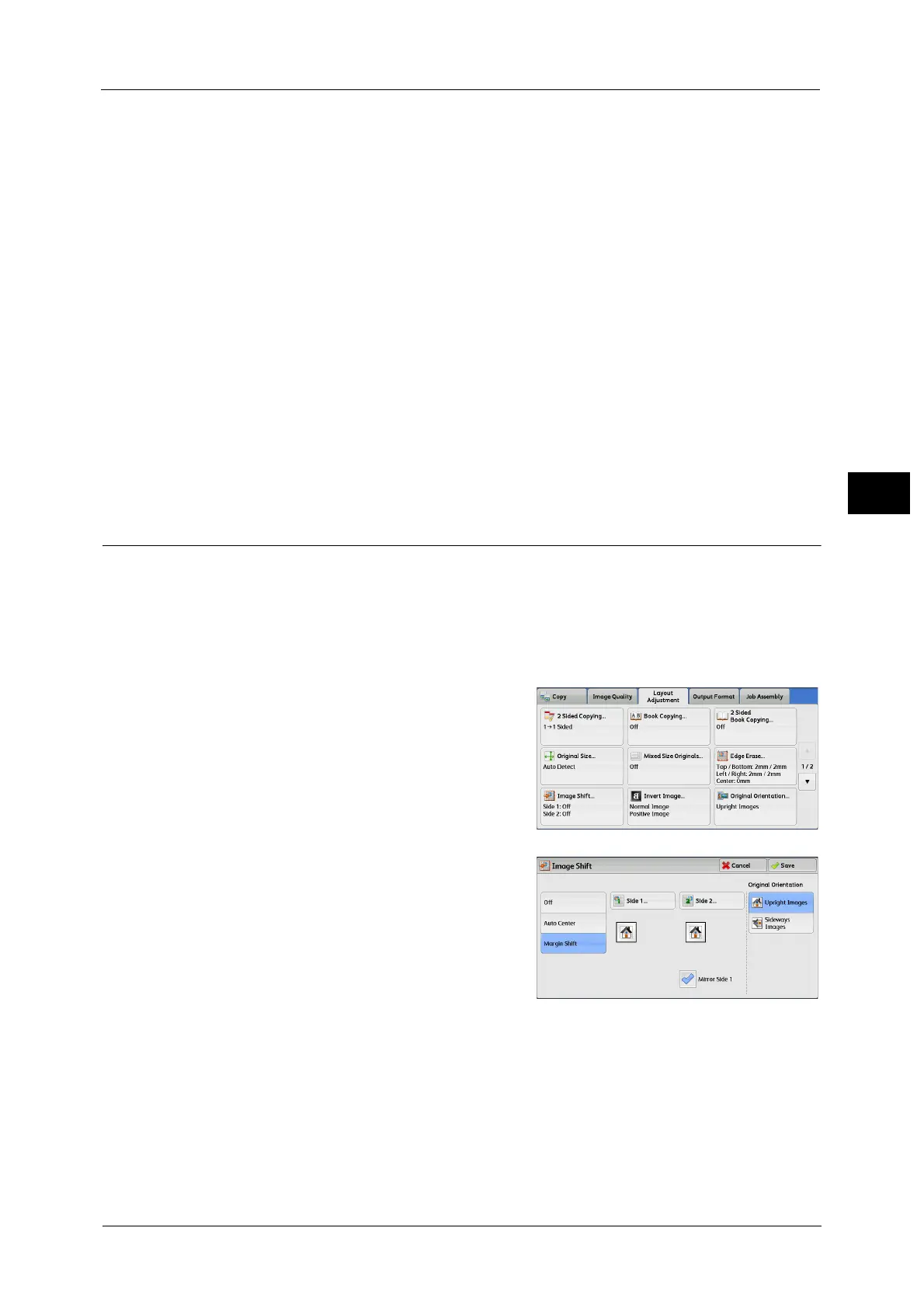 Note • The image shift amount is set in accordance with the paper, and does not affect the setting made in