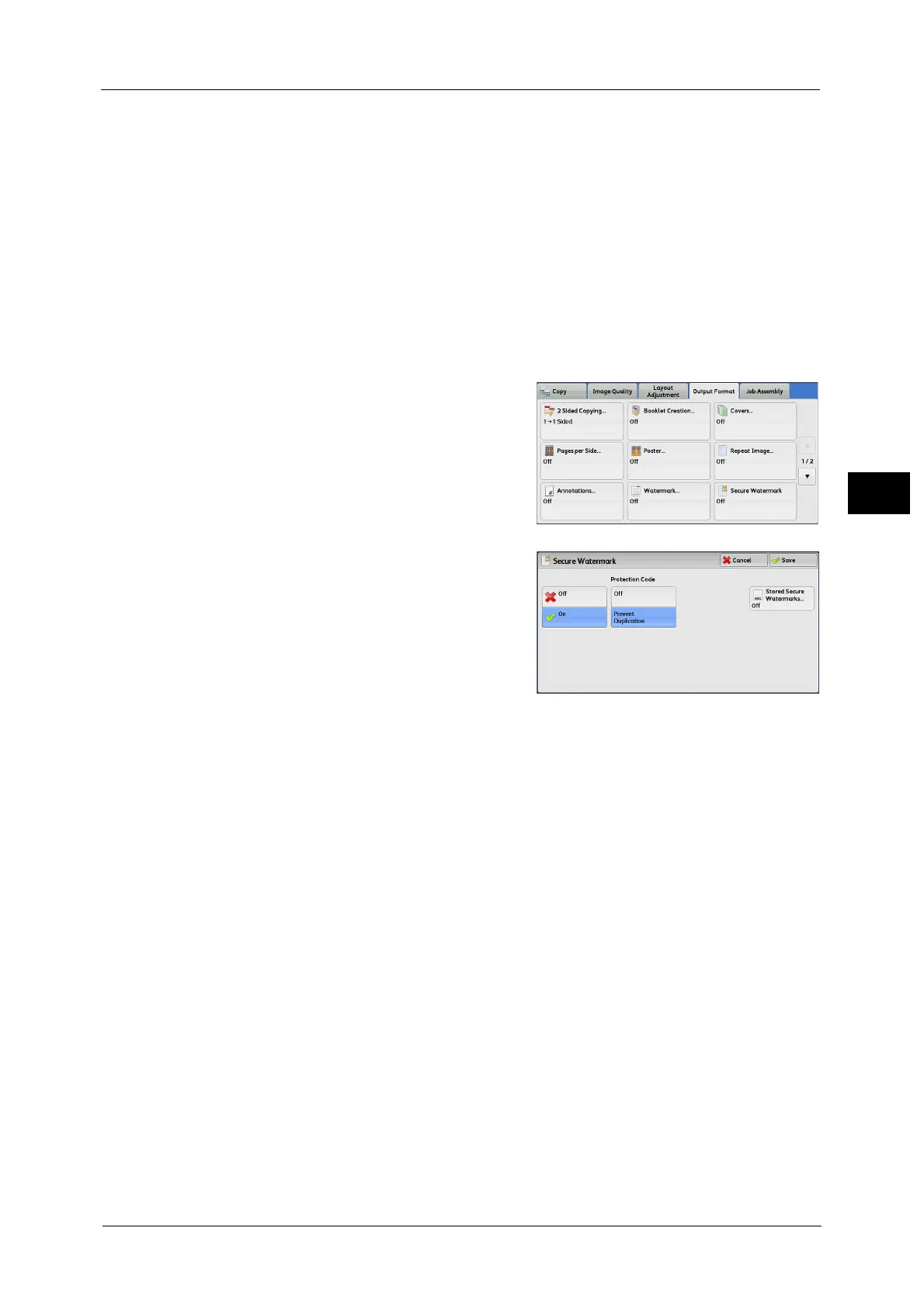 • The Watermark and Secure Watermark features cannot be used simultaneously.