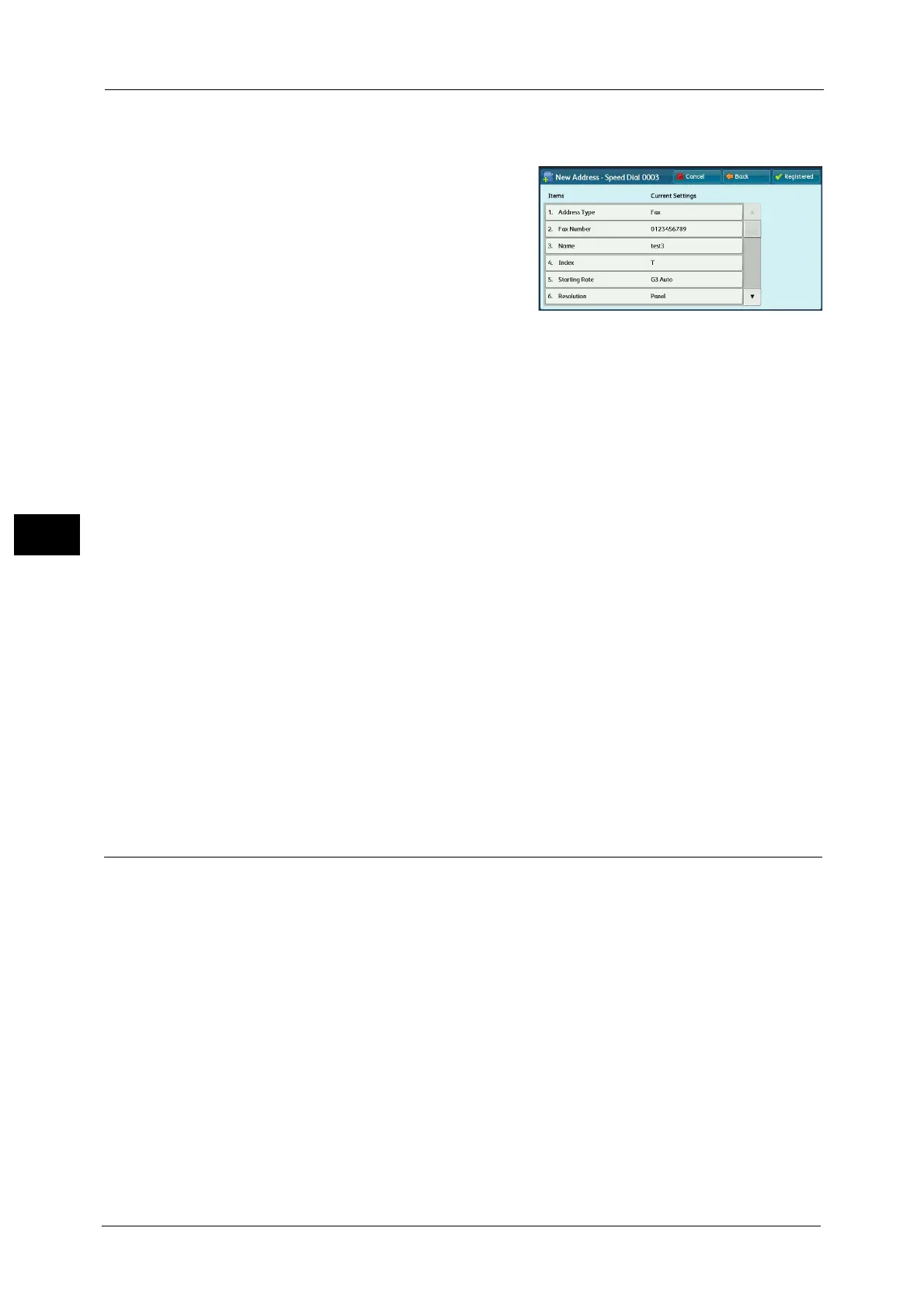 • To delete the input data and return to the [Fax Address Book] screen, select [Cancel].