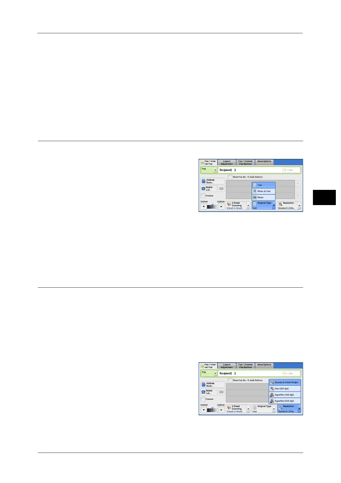 Note The machine scans a document at the specified resolution, but if the recipient's machine does not