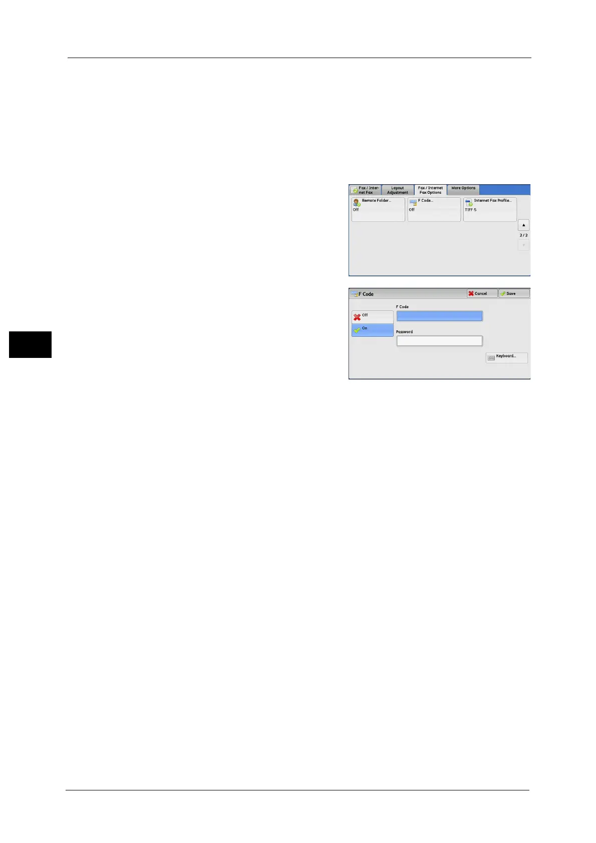 3 Select the [F Code] box, and enter an F code using the displayed keyboard or the numeric
