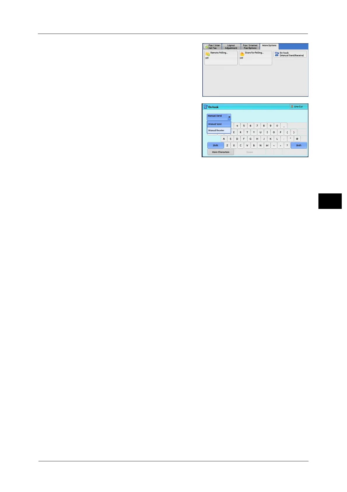 Manual Receive : Allows you to receive a fax manually, such as Facsimile