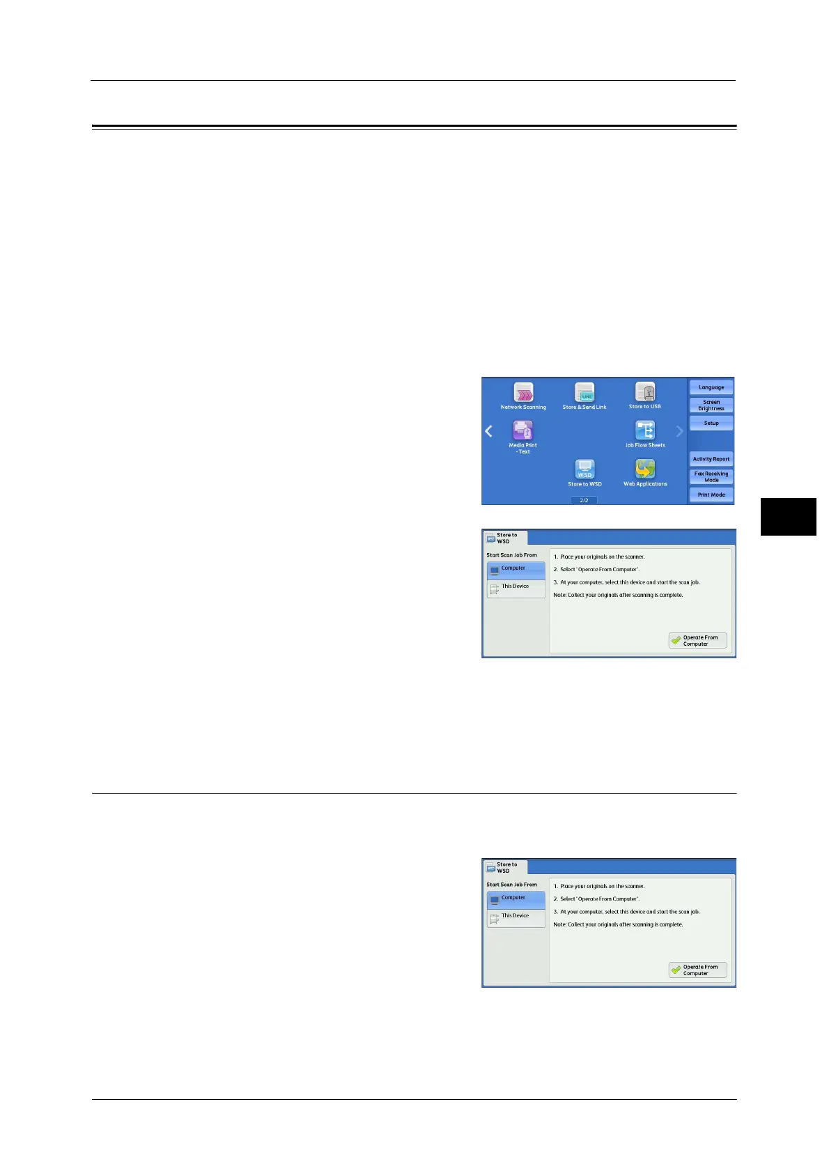 The Store to WSD service allows you to scan documents set on the machine from a network