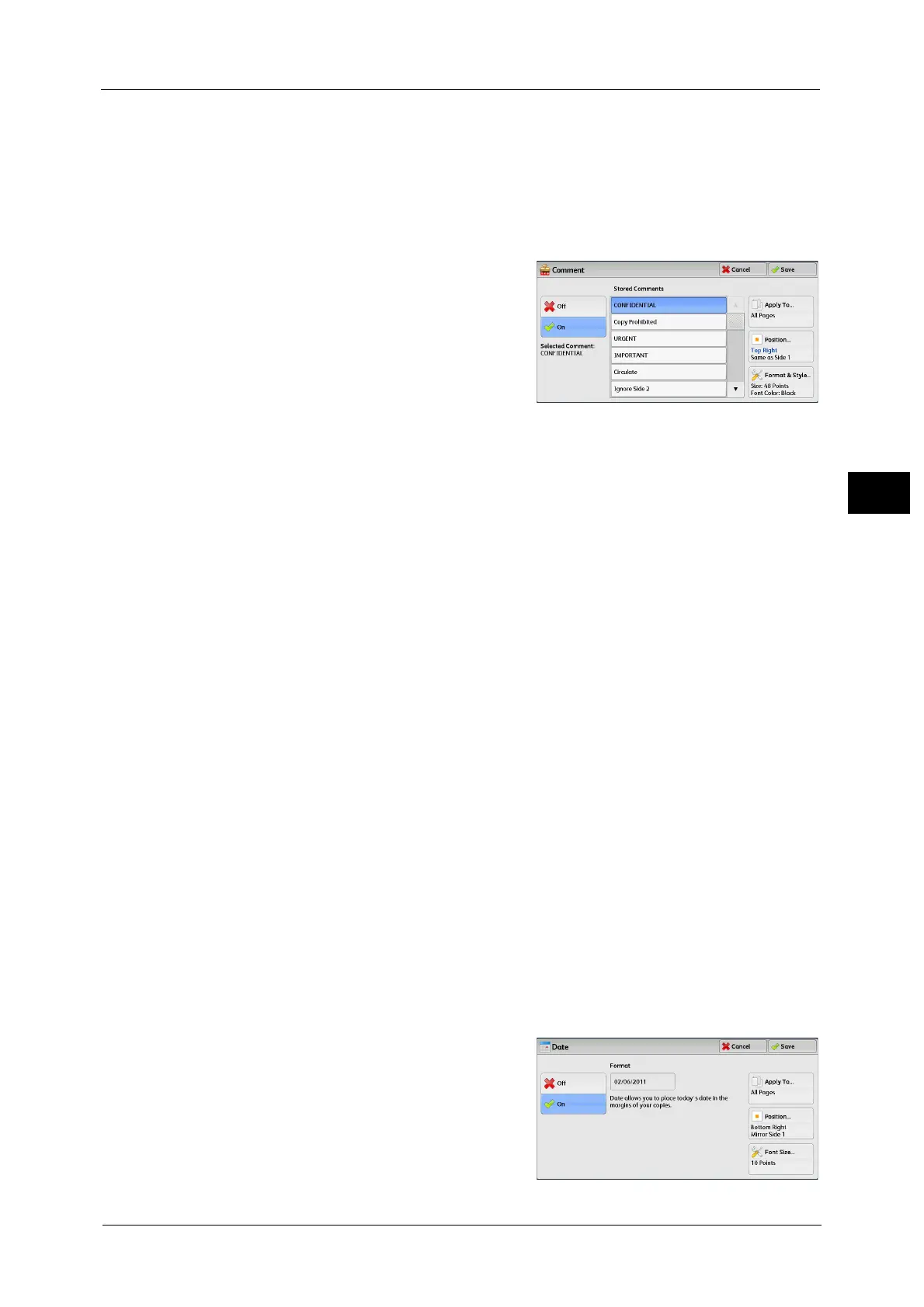 This screen allows you to add a date onto copies. The date shows when you started copying