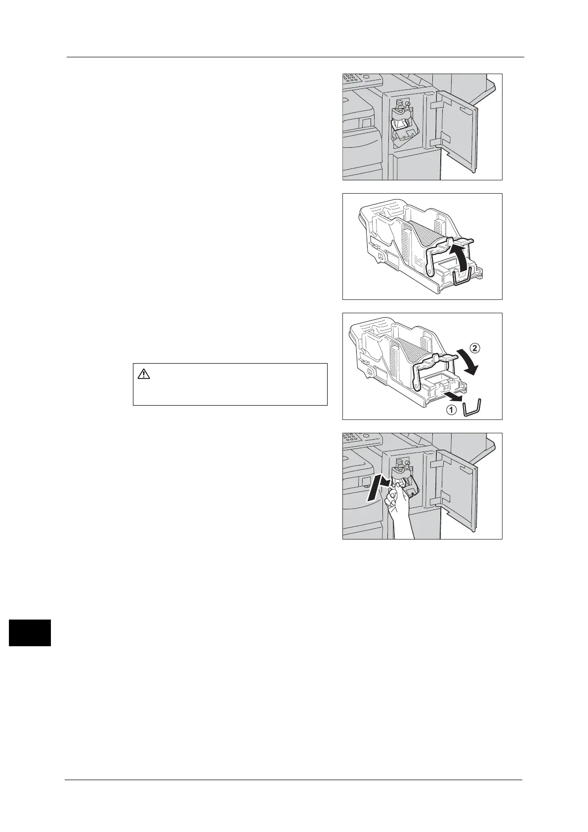 Note If the finisher front door is not completely closed, a message will appear and the machine remains