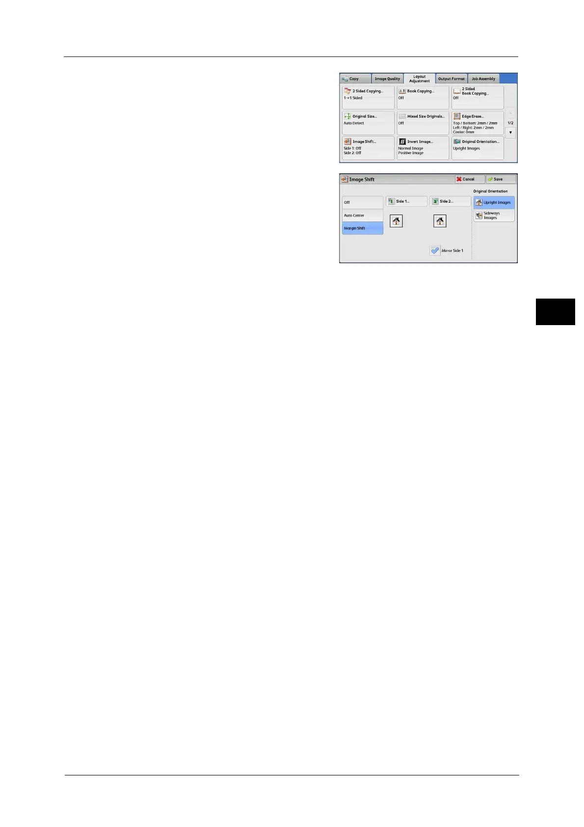 Refer to "[Image Shift - Side 1] Screen" (P.142).
