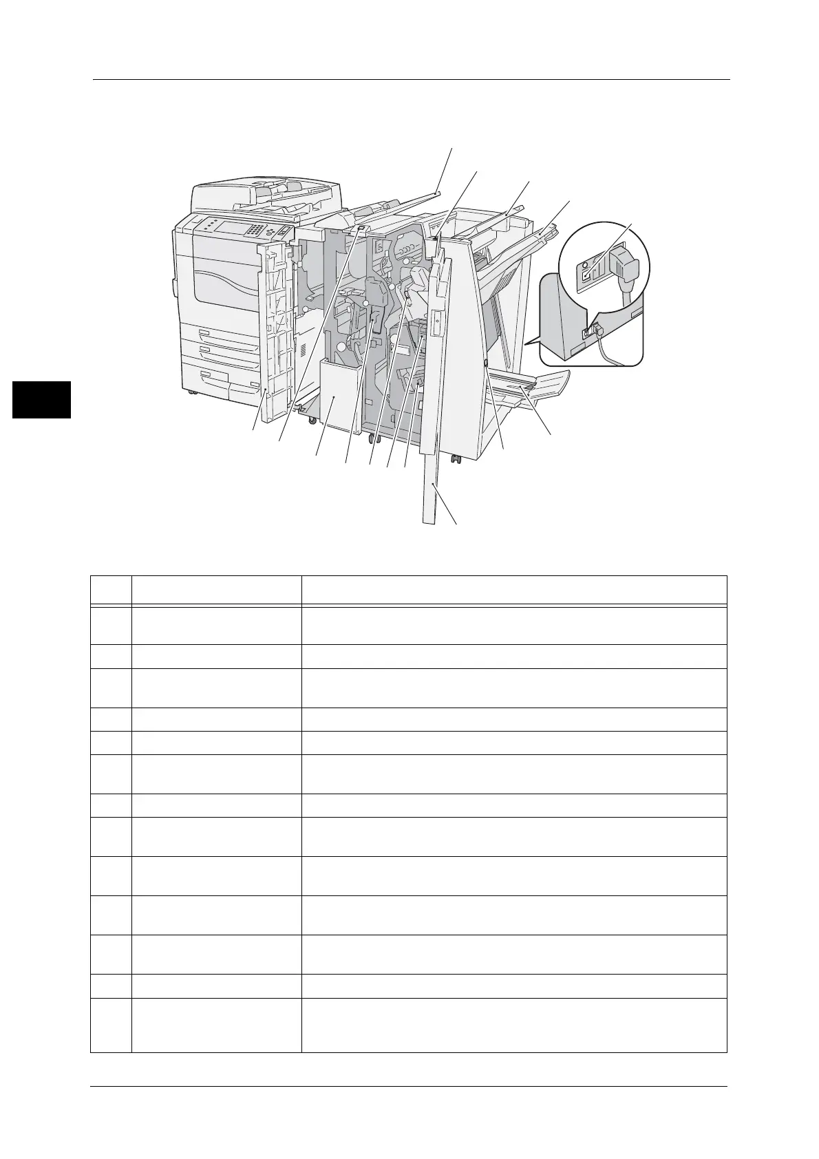 10 Staple scrap container Receives scraps from the stapler. Take this container out when replacing it