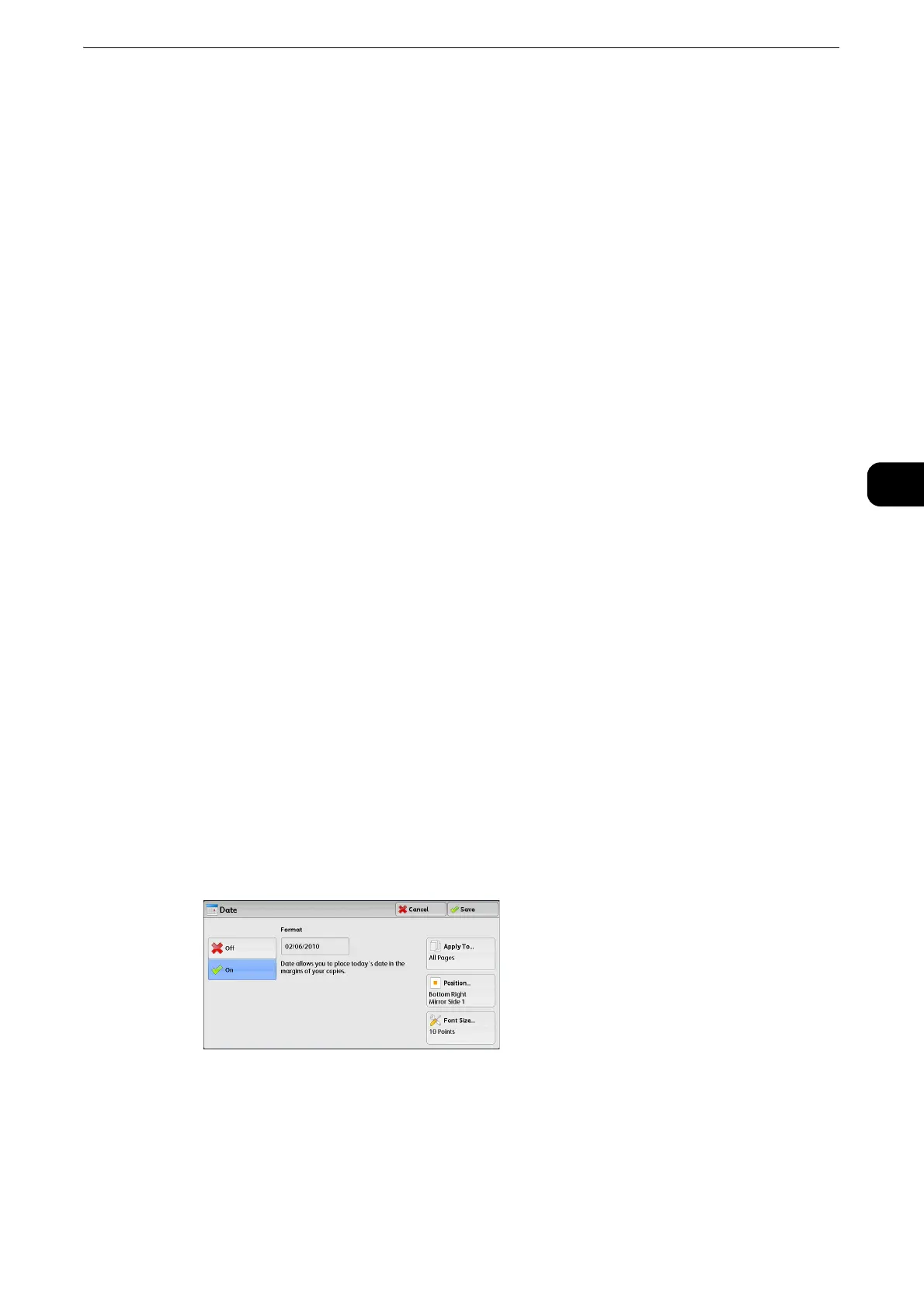 This screen allows you to add a date onto copies. The date shows when you started copying