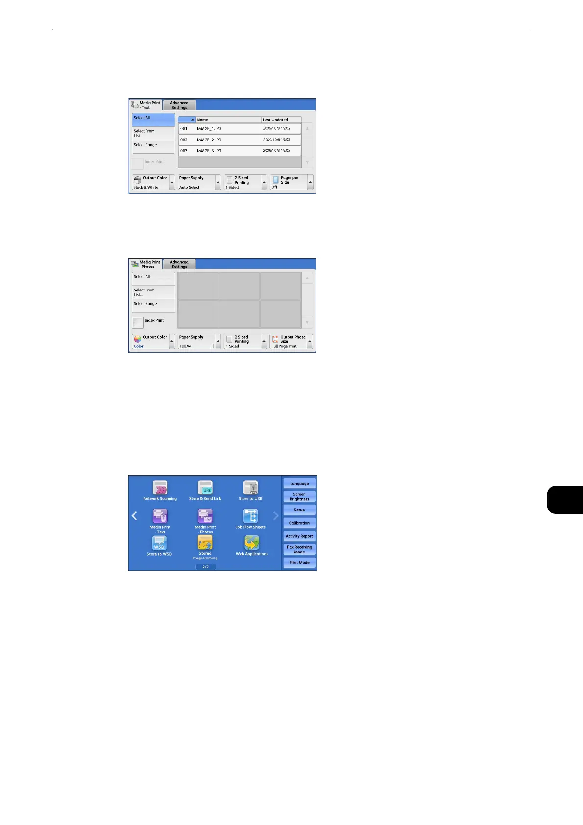2 Select [Media Print - Text] or [Media Print - Photos] on the Services Home screen.